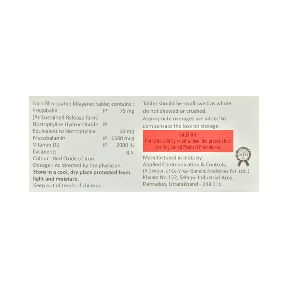 Salt Composition: Pregabalin (75mg) + Nortriptyline (10mg) + Methylcobalamin (1500mcg) + Vitamin D3 (2000IU)