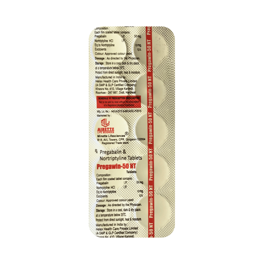 Pregawin Plus Tablet SR combines four medicines: pregabalin, nortriptyline, methylcobalamin, and vitamin D3. Pregabalin is an alpha-2 delta ligand that decreases pain by modulating the calcium channel activity of the nerve cells. Nortriptyline is a tricyclic antidepressant that increases the levels of chemical messengers (serotonin and noradrenaline) that stop the movement of pain signals in the brain. Methylcobalamin is a form of vitamin B that helps produce myelin, a substance that protects nerve fibers and rejuvenates damaged nerve cells. Vitamin D3 helps nerves send messages properly in the body. It supports brain chemicals, protects nerve coverings, and reduces swelling, which keeps nerves healthy and helps relieve pain. Together, they relieve neuropathic pain (pain from damaged nerves).