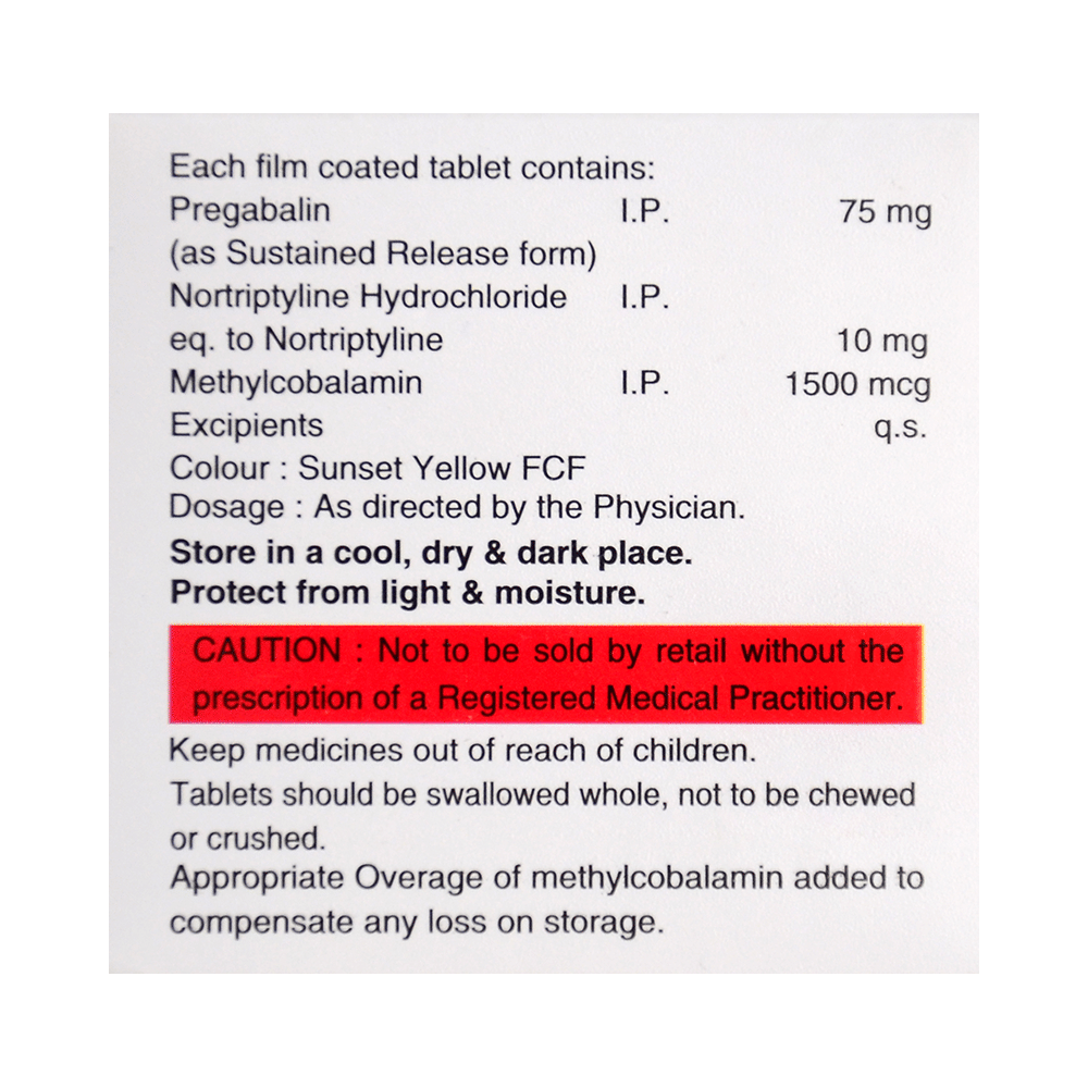 Salt Composition: Pregabalin (75mg) + Nortriptyline (10mg) + Methylcobalamin (1500mcg)