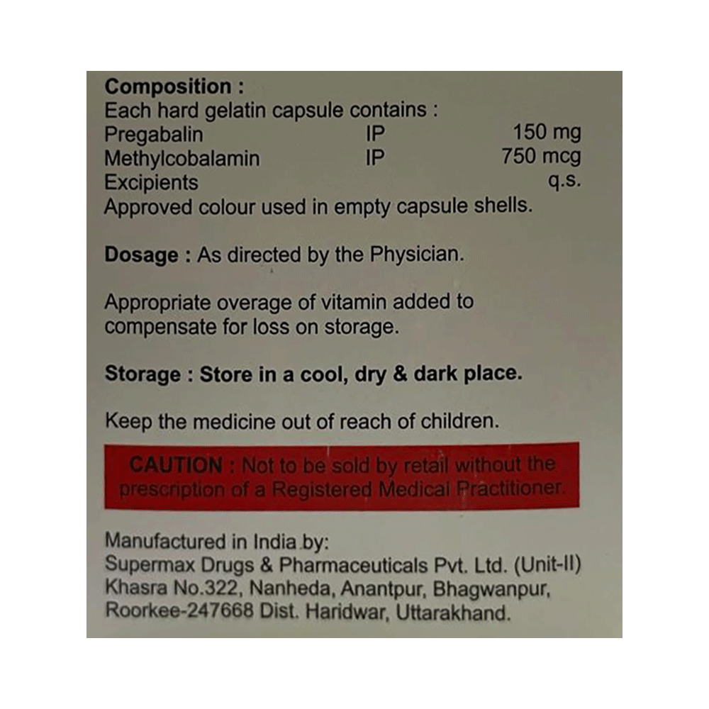 Salt Composition: Methylcobalamin (750mcg) + Pregabalin (150mg)