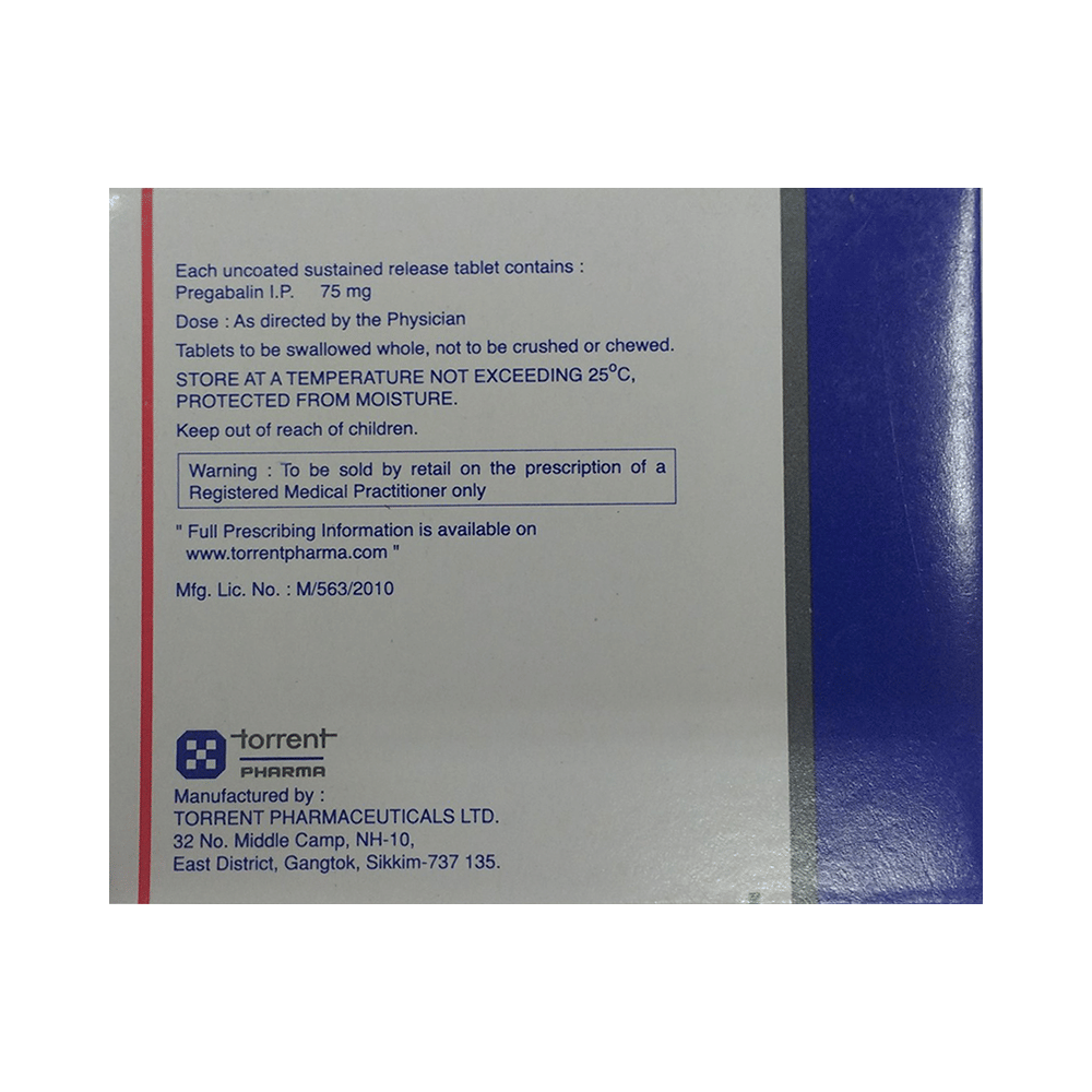 Pregeb OD 75 Tablet is a medicine used to relieve pain caused by nerve damage (neuropathic pain) due to diabetes, shingles (herpes zoster infection), spinal cord injury, or other conditions. It is also used to treat widespread muscle pain and stiffness in people with fibromyalgia. Pregeb OD 75 Tablet belongs to the anti-epileptic group of medicines and can also be used to treat certain types of seizures (fits) in combination with other medicines. Additionally, it may also be prescribed to treat the symptoms of anxiety disorder if other medicines are not suitable.You can take Pregeb OD 75 Tablet with or without food, but it is important to take this medicine at the same time each day to get the most benefit. The exact dose and duration of treatment will depend on your condition and how you respond to it. Your doctor will probably start this medicine at a low dose and increase it gradually. It may take a few weeks for the medicine to work properly. Follow your doctor’s instructions and continue taking it regularly until your doctor advises you to stop. Do not miss any dose, otherwise, your condition may worsen.The side effects of this medicine are usually mild and go away by themselves. The most common ones are feeling sleepy or dizzy, dryness in the mouth, blurred vision, weight gain, edema (swelling over the whole body), and difficulty in concentrating. Most side effects are not serious and do not need medical attention. Talk to your doctor about potential side effects and ways in which you might prevent or cope with them.Before taking the medicine you should tell your doctor if you are pregnant, breastfeeding, or planning to become pregnant. Be careful while driving as sleepiness, dizziness, and blurring of vision may be seen as side effects. You should avoid drinking alcohol along with this medicine as it may lead to excessive sleepiness and dizziness.