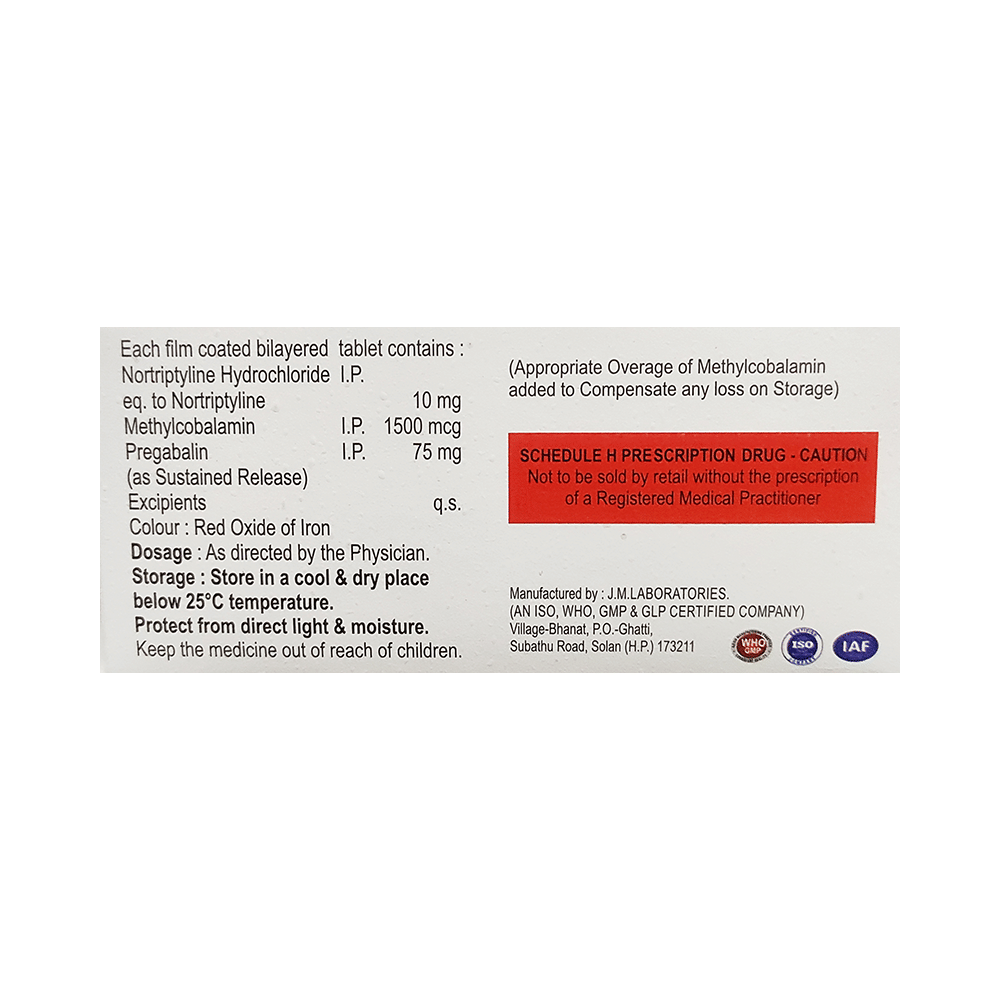 Salt Composition: Pregabalin (75mg) + Nortriptyline (10mg) + Methylcobalamin (1500mcg)