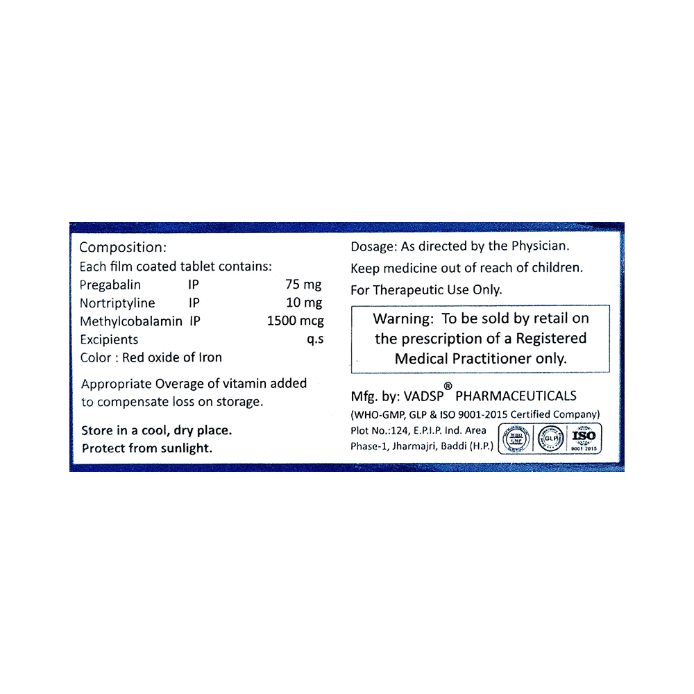 Salt Composition: Pregabalin (75mg) + Nortriptyline (10mg) + Methylcobalamin (1500mcg)