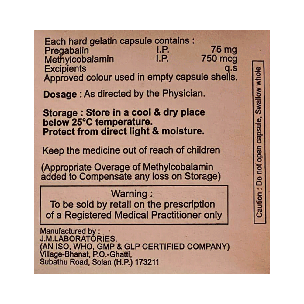 Salt Composition: Methylcobalamin (750mcg) + Pregabalin (75mg)
