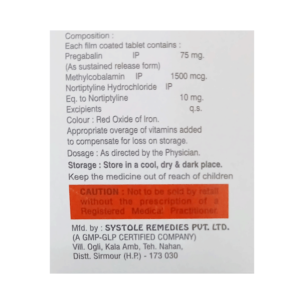 Salt Composition: Pregabalin (75mg) + Nortriptyline (10mg) + Methylcobalamin (1500mcg)