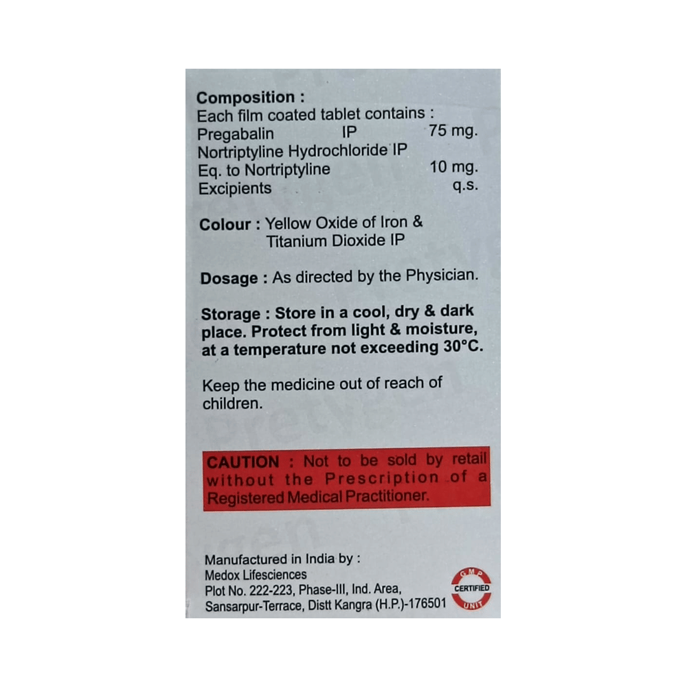 Salt Composition: Pregabalin (75mg) + Nortriptyline (10mg)