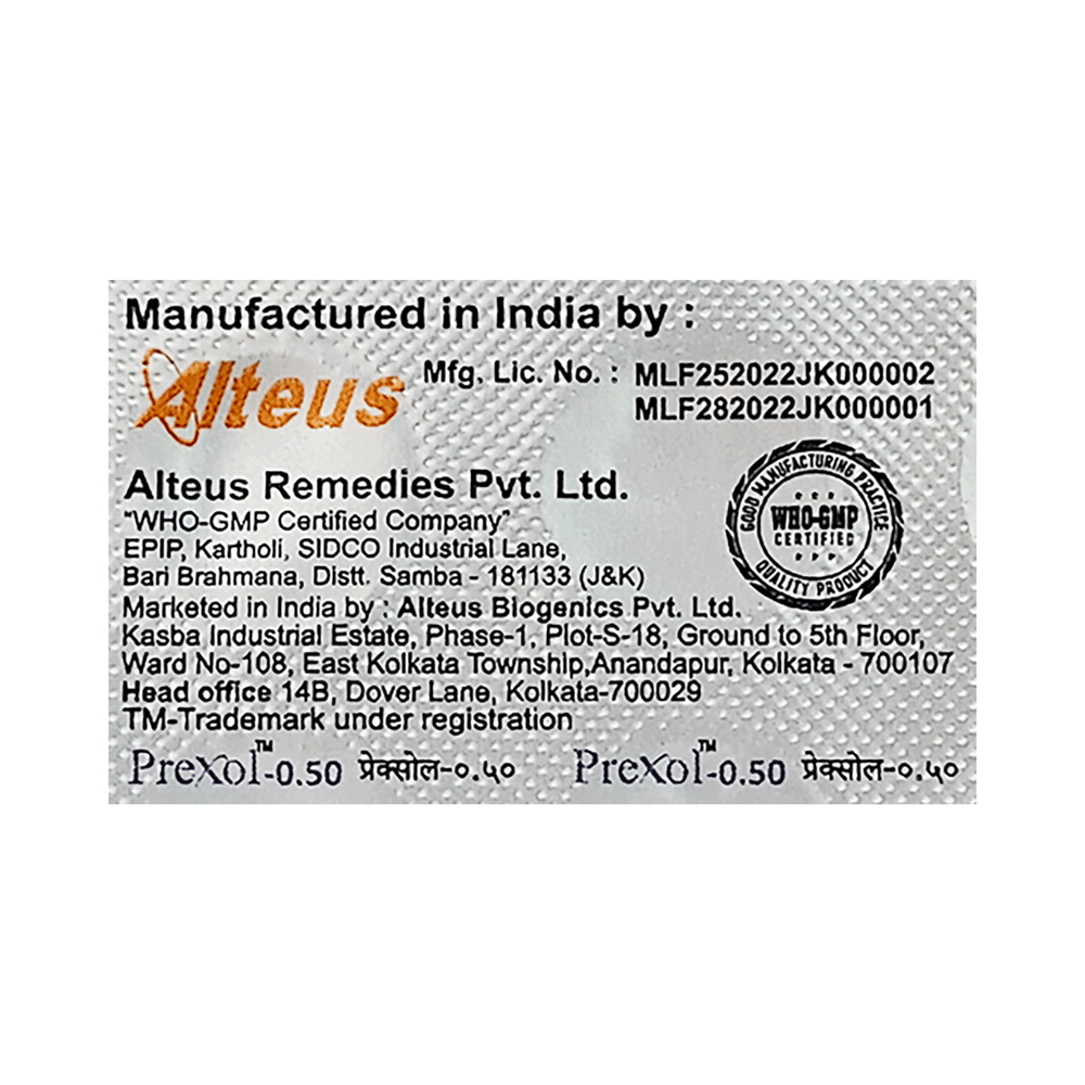 Take this medicine in the dose and duration as advised by your doctor. Swallow it as a whole. Do not chew, crush or break it. Prexol 0.50 Tablet is to be taken with food.