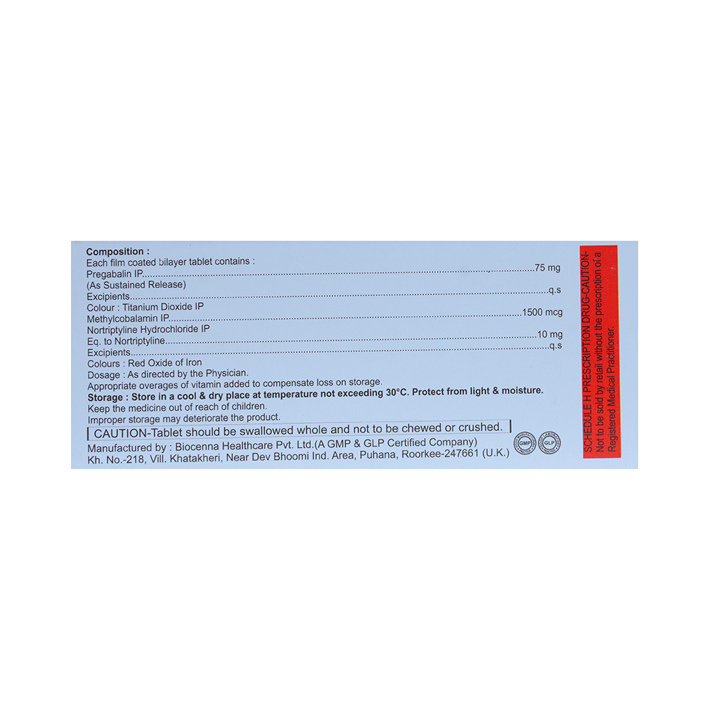 Salt Composition: Pregabalin (75mg) + Nortriptyline (10mg) + Methylcobalamin (1500mcg)