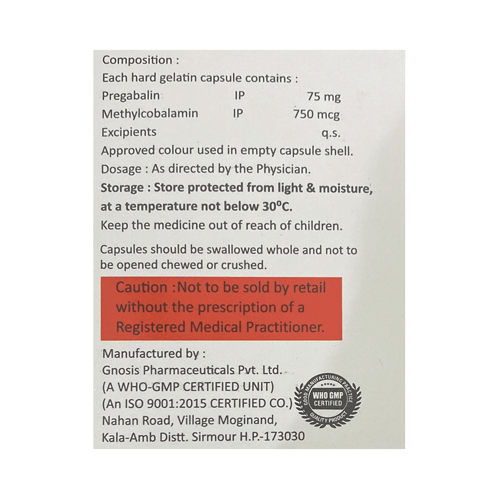 Salt Composition: Methylcobalamin (750mcg) + Pregabalin (75mg)