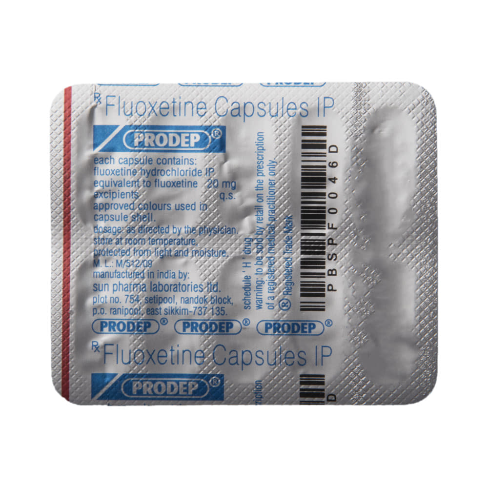 Prodep Capsule is a type of antidepressant belonging to the selective serotonin reuptake inhibitor (SSRI) group of medicines. It is widely prescribed to treat depression and other mental health conditions like panic disorder and obsessive-compulsive disorder. Prodep Capsule helps many people to recover from depression by improving their mood and relieving anxiety and tension. It is also used to treat bulimia nervosa (an eating disorder), where it reduces binge-eating and purging (vomiting).The dose and how often you need it will be decided by your doctor so that you get the right amount to control your symptoms. Your doctor may start you on a lower dose and increase it gradually. Do not change the dose or stop taking it without talking to your doctor, even if you feel well. Doing so may make your condition worse or you may suffer from unpleasant withdrawal symptoms (anxiety, restlessness, palpitations, dizziness, sleep disturbances, etc).To get the most benefit, take this medicine regularly at the same time each day. It may take a few weeks before you start feeling better. Let your doctor know if you do not see any improvement even after 4 weeks. Some common side effects of Prodep Capsule include nausea, indigestion, dry mouth, fatigue, loss of appetite, increased sweating, sinusitis, insomnia (difficulty in sleeping), yawning, and abnormal dreams. Sexual side effects like decreased sexual drive delayed ejaculation, and erectile dysfunction may also be seen. Let your doctor know straight away if you develop any sudden worsening of mood or any thoughts about harming yourself.Before taking this medicine, you should tell your doctor if you have epilepsy (seizure disorder or fits), diabetes, liver or kidney disease, heart problems, or glaucoma. These may affect your treatment. Pregnant or breastfeeding women should also consult their doctor before taking it. Some other medicines may affect the way it works, especially other antidepressants and medicines called MAO inhibitors. Please tell your doctor about all the medicines you are taking to make sure you are safe.