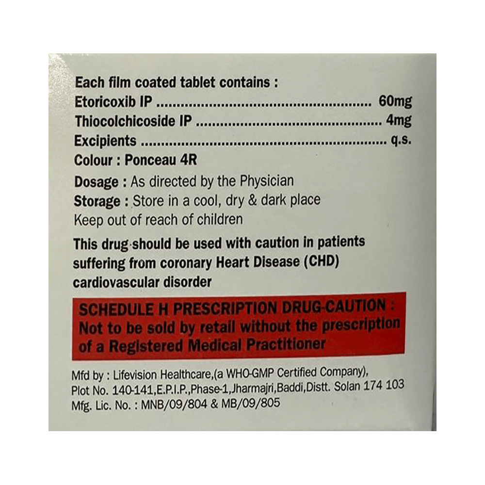 Salt Composition: Etoricoxib (60mg) + Thiocolchicoside (4mg)