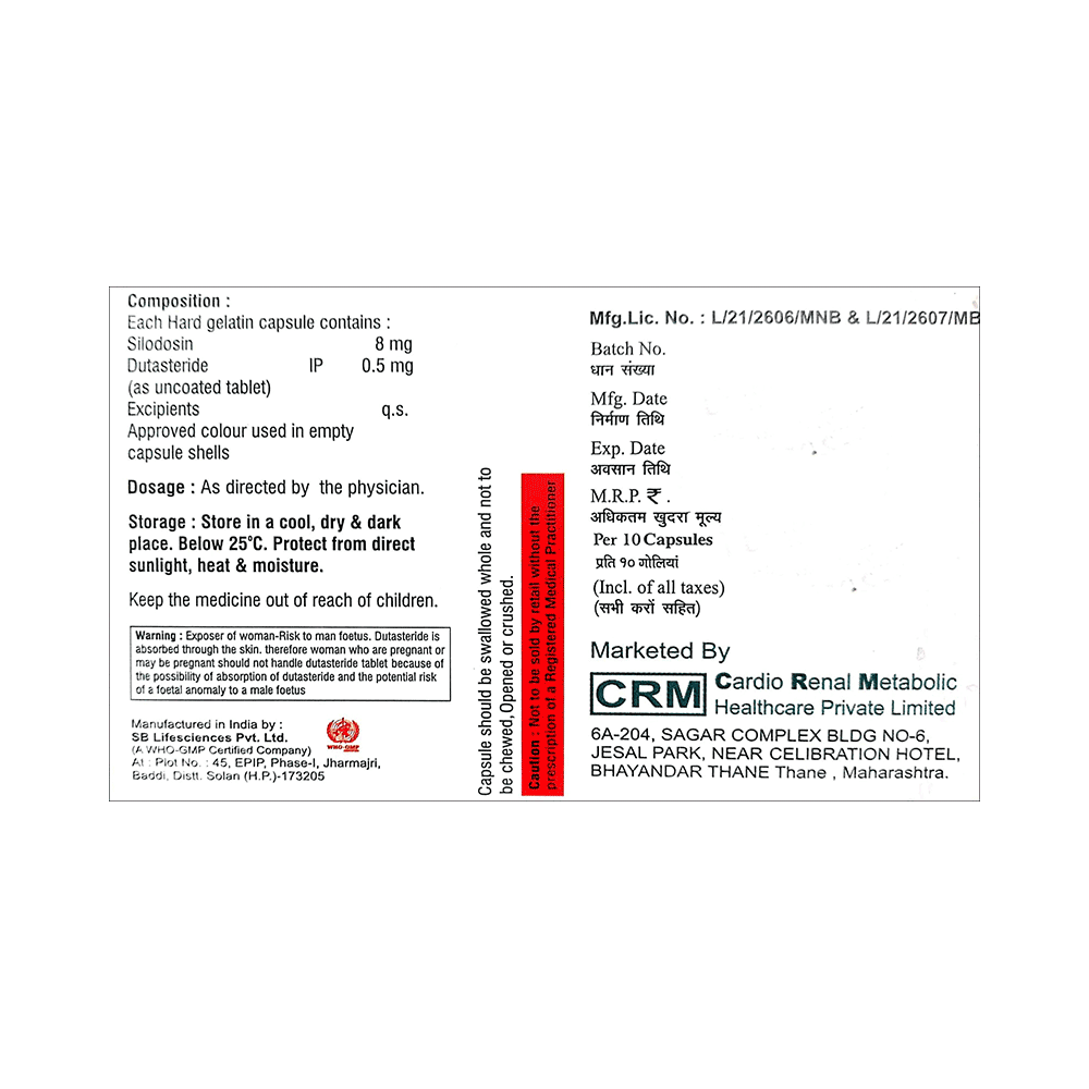 Salt Composition: Silodosin (8mg) + Dutasteride (0.5mg)