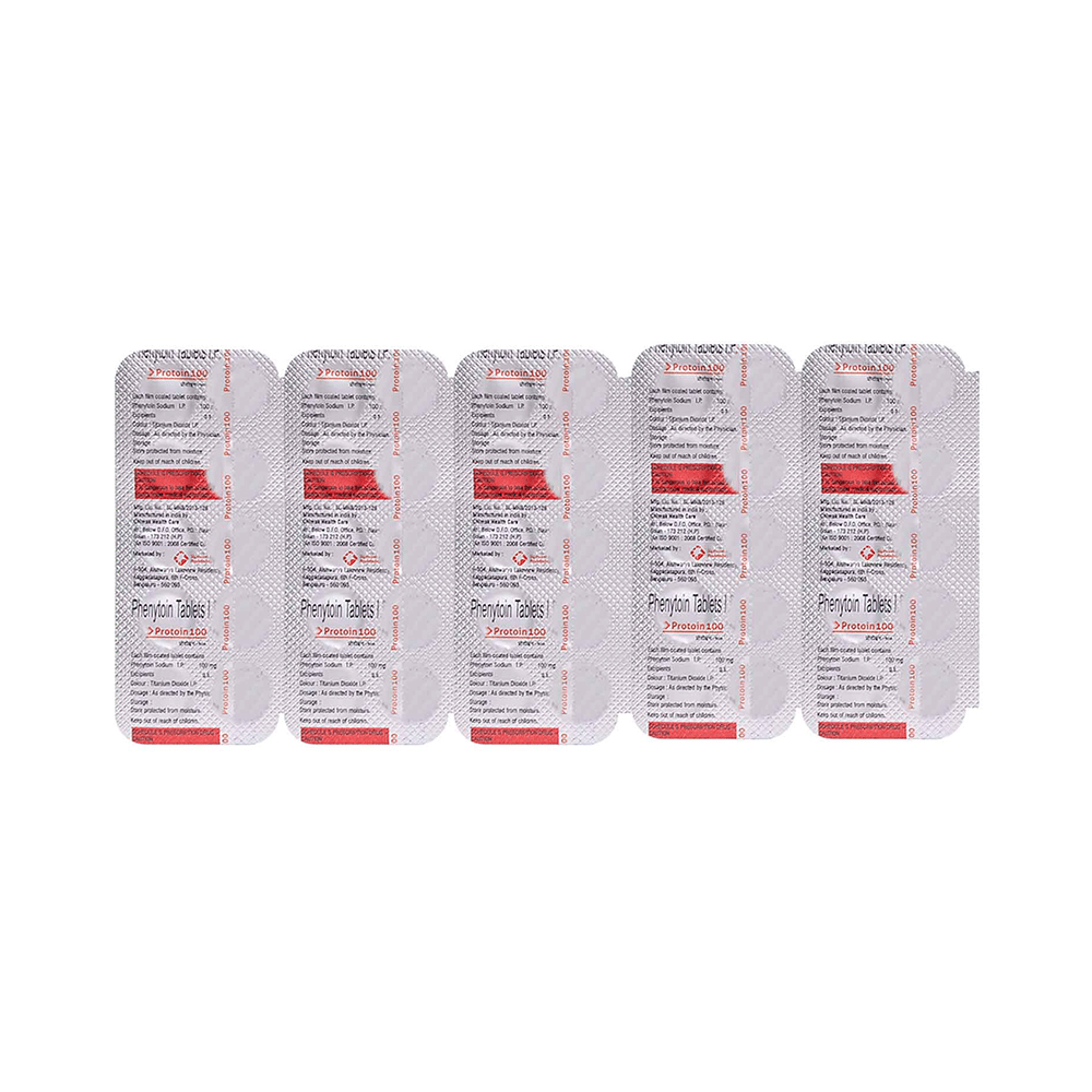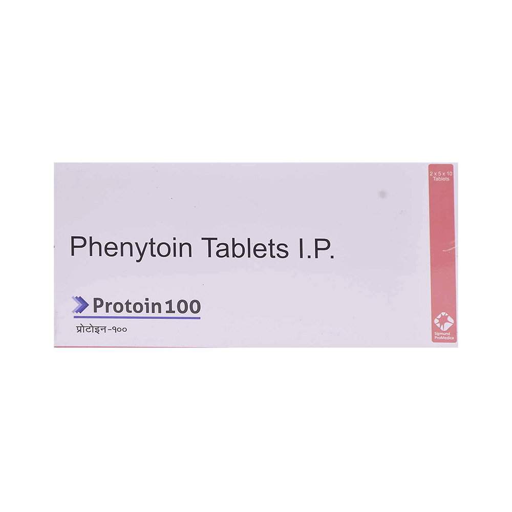 Protoin 100mg Tablet is a prescription medicine used to treat and prevent epilepsy (seizures). It controls seizures by decreasing the abnormal and excessive activity of the nerve cells in the brain. Protoin 100mg Tablet can be used alone or in combination with other medicines. It should be taken in the dose and duration as advised by your doctor. This may increase gradually until your condition is stable. This medicine may take several weeks to work but it is important to take it regularly to get the benefit. Do not stop taking it, even if you feel fine, unless your doctor advises you to. You may have more seizures, or your bipolar disorder may get worse.The most common side effects of this medicine include skin involuntary eye movement, lack of coordination, slurred speech, mental confusion, nausea, vomiting, constipation, and rash. Most side effects wear off, but if they bother you or do not go away, tell your doctor. There may be ways of preventing or reducing these effects.Before taking this medicine, tell your doctor if you have kidney or liver problems, meningitis or depression or suicidal thoughts. Also let your healthcare team know about all other medications you are using as some may affect, or be affected by, this medicine, including contraceptive pills. If you are pregnant or breastfeeding, Protoin 100mg Tablet can be taken if it is clearly needed but the dose may be adjusted. You should avoid driving or riding a bicycle if this medicine makes you drowsy or dizzy. You may need frequent blood tests to check how you are responding to this medicine.