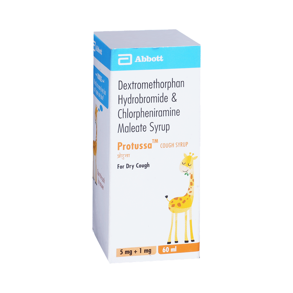 Protussa Cough Syrup is a combination of two medicines: Chlorpheniramine Maleate and Dextromethorphan Hydrobromide, which relieves dry cough. Chlorpheniramine Maleate is an antiallergic which helps reduce cough associated with allergies by blocking the effects of a chemical messenger, histamine. Dextromethorphan Hydrobromide is a cough suppressant which relieves cough by reducing the activity of cough center in the brain.