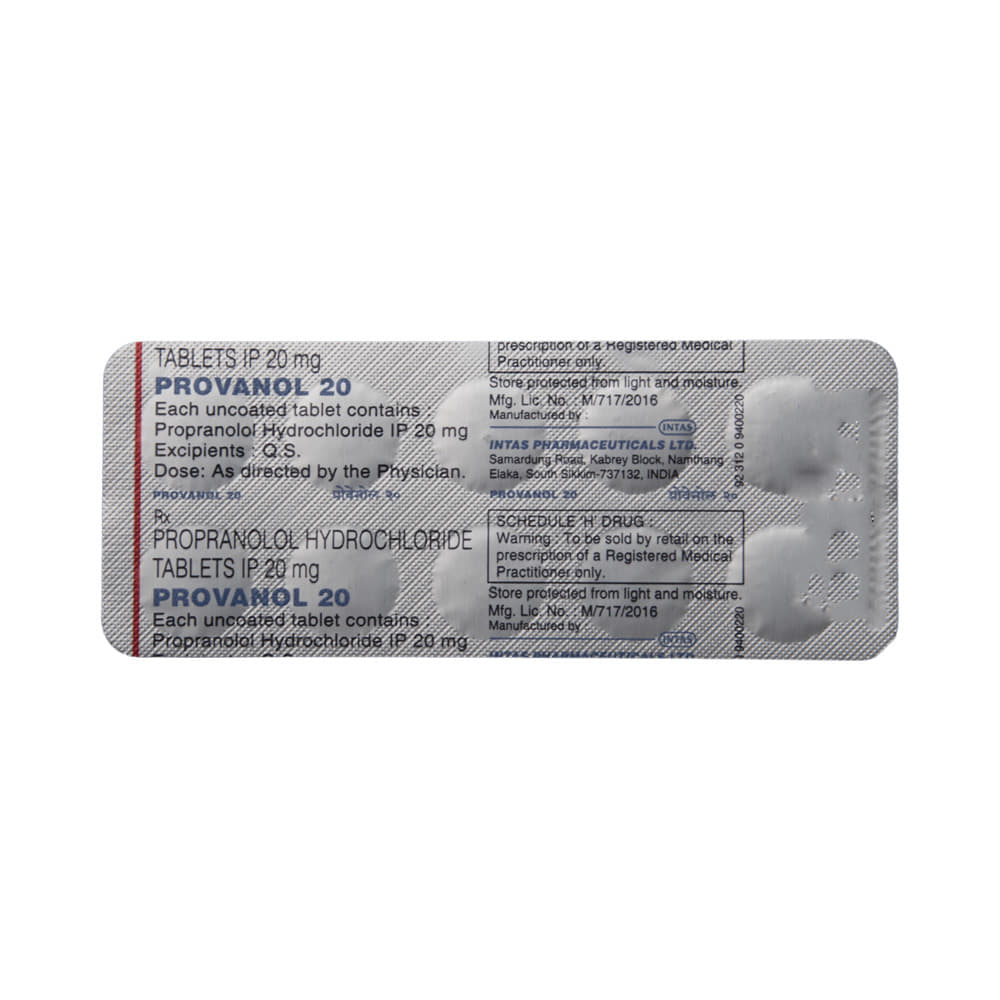 In Prevention of Angina (heart-related chest pain)Provanol 20 Tablet relaxes the blood vessels so that blood can flow more easily around your body and makes sure that your heart is getting a good supply of oxygen. This makes it less likely that you will suffer chest pain caused by angina. This medicine can help increase your ability to exercise and go about your daily life more easily by reducing the frequency of angina attacks. You should take it regularly and as long as it is prescribed for it to work effectively.In Treatment of PheochromocytomaWhile carrying out surgery for the removal of pheochromocytoma, there is a risk of abnormally high blood pressure. Provanol 20 Tablet blocks the effect of some chemicals on your heart and blood vessels. This slows down the heart rate and helps the heartbeat with less force thereby lowering your blood pressure. It is used for the immediate reduction of very high blood pressure (hypertensive emergency). Controlled blood pressure reduces the risk of having a heart attack, stroke, or kidney problems.In Prevention of migraineProvanol 20 Tablet helps improve the flow of blood in your brain and prevents abnormal activity of muscles that triggers migraines. It is a very effective medicine for preventing migraine attacks, however, it does not treat an attack that has already started. By preventing and reducing the frequency of migraine attacks, the medicine can help you carry out your daily activities and improve your quality of life.show moreshow less