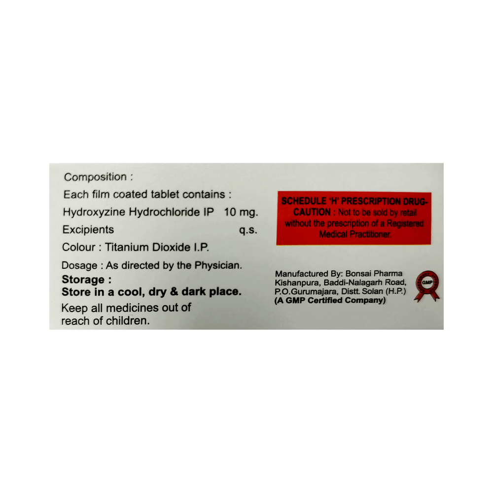 Prucalm 10 Tablet is an antihistaminic medication. In allergy, it works by blocking the action of a chemical messenger (histamine). This relieves allergy symptoms such as itching, swelling, and rashes. In short-term anxiety, it works by decreasing the activity in the brain, thereby helping you feel relaxed/sleepy.
