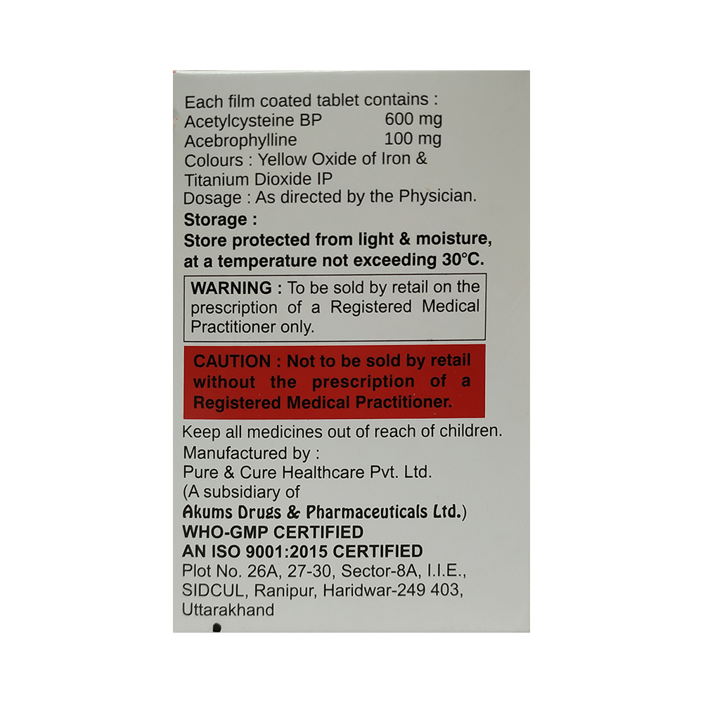 Salt Composition: Acebrophylline (100mg) + Acetylcysteine (600mg)