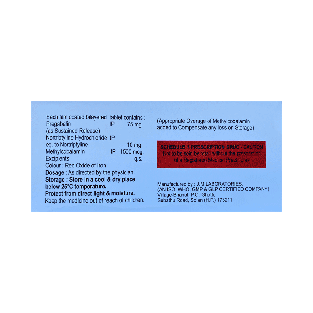 Salt Composition: Pregabalin (75mg) + Nortriptyline (10mg) + Methylcobalamin (1500mcg)