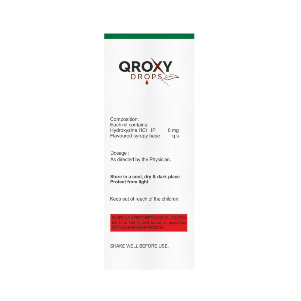Qroxy Oral Drops is an antihistaminic medication. In allergy, it works by blocking the action of a chemical messenger (histamine). This relieves allergy symptoms such as itching, swelling, and rashes. In short-term anxiety, it works by decreasing the activity in the brain, thereby helping you feel relaxed/sleepy.