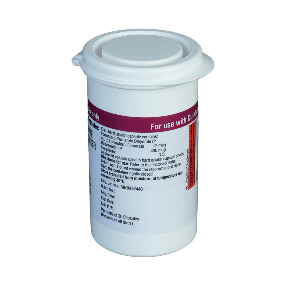 Quikhale FB Forte Rotacap is a combination of two medicines: Formoterol and Budesonide. Formoterol is a long-acting bronchodilator which works by relaxing the muscles in the airways and widens the airways. Budesonide is a steroid. It works by stopping the release of certain chemical messengers that cause inflammation (swelling) of the airways. Together, they make breathing easier.