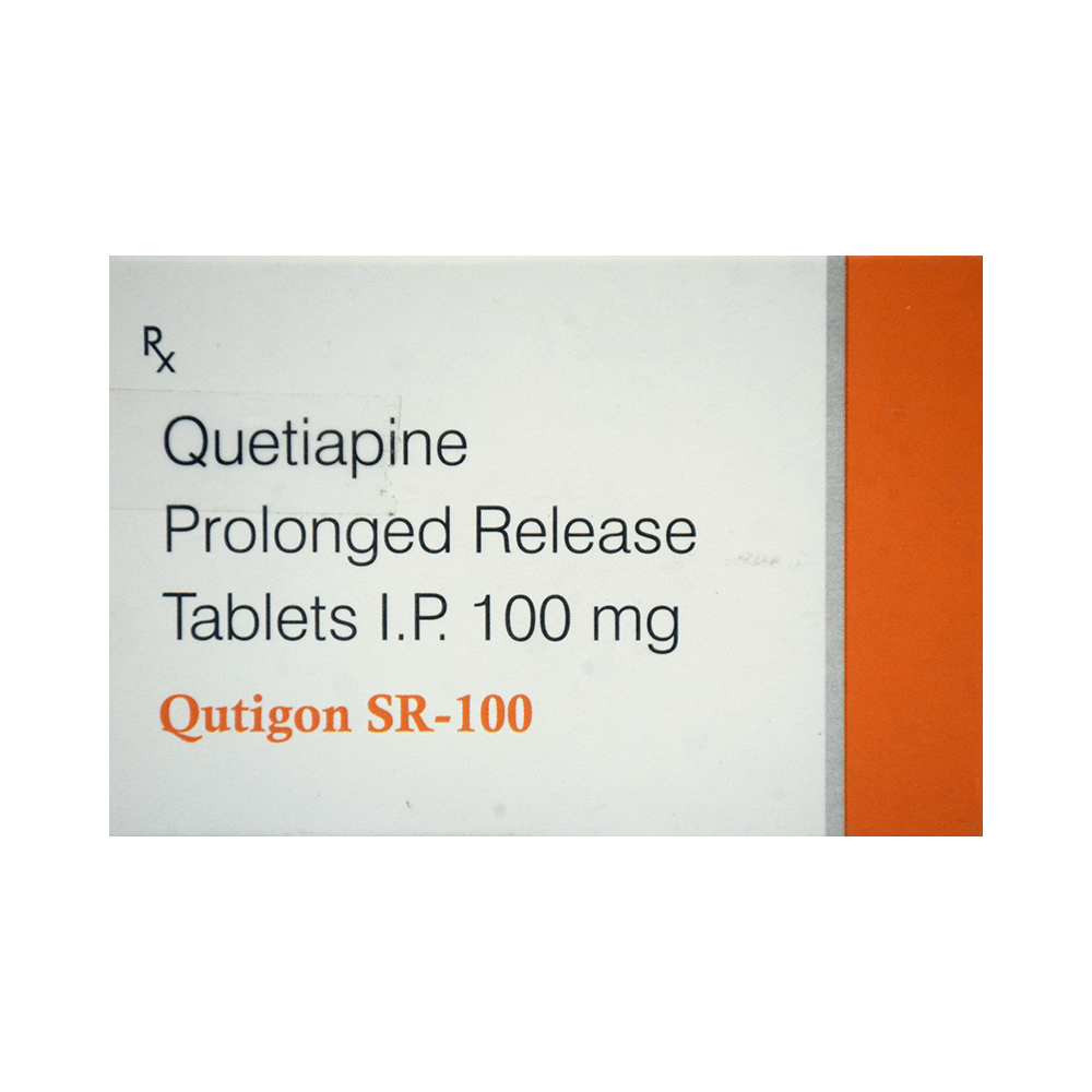 Qutigon SR 100 Tablet is used in the treatment of schizophrenia (a mental disorder that can result in hallucinations or delusions and also adversely affects a person’s ability to think and behave) and mania. It is also used to treat bipolar disorders. Qutigon SR 100 Tablet may be taken with or without food. However, it is advised to take it at the same time each day as this helps to maintain a consistent level of medicine in the body. Take this in the dose and duration as advised by your doctor and if you have missed a dose, take it as soon as you remember. It is important that this medication is not stopped suddenly without talking to your doctor as it may worsen your symptoms. However, discontinue this medicine immediately if you experience Neuroleptic malignant syndrome (NMS), characterized by fever, muscle rigidity, and altered consciousness or seizures.Some common side effects of this medicine include decreased hemoglobin levels in the blood, increased triglycerides level in blood, decreased cholesterol level in blood, headache, extrapyramidal symptoms, dry mouth, and withdrawal symptoms. Initially, this medicine may cause a sudden drop in blood pressure when you change positions, so it is better to rise slowly if you have been sitting or lying down. It also causes dizziness and sleepiness, so do not drive or do anything that requires mental focus until you know how this medicine affects you. This medicine may increase your weight but, modifying your lifestyle by having a healthy diet and exercising regularly can reduce this side effect.You should be cautious while using this medicine as it may increase the risk of developing diabetes, so it is better to monitor glucose regularly. Inform your doctor if you develop any unusual changes in mood or behavior, new or worsening depression, or suicidal thoughts while taking this medicine.