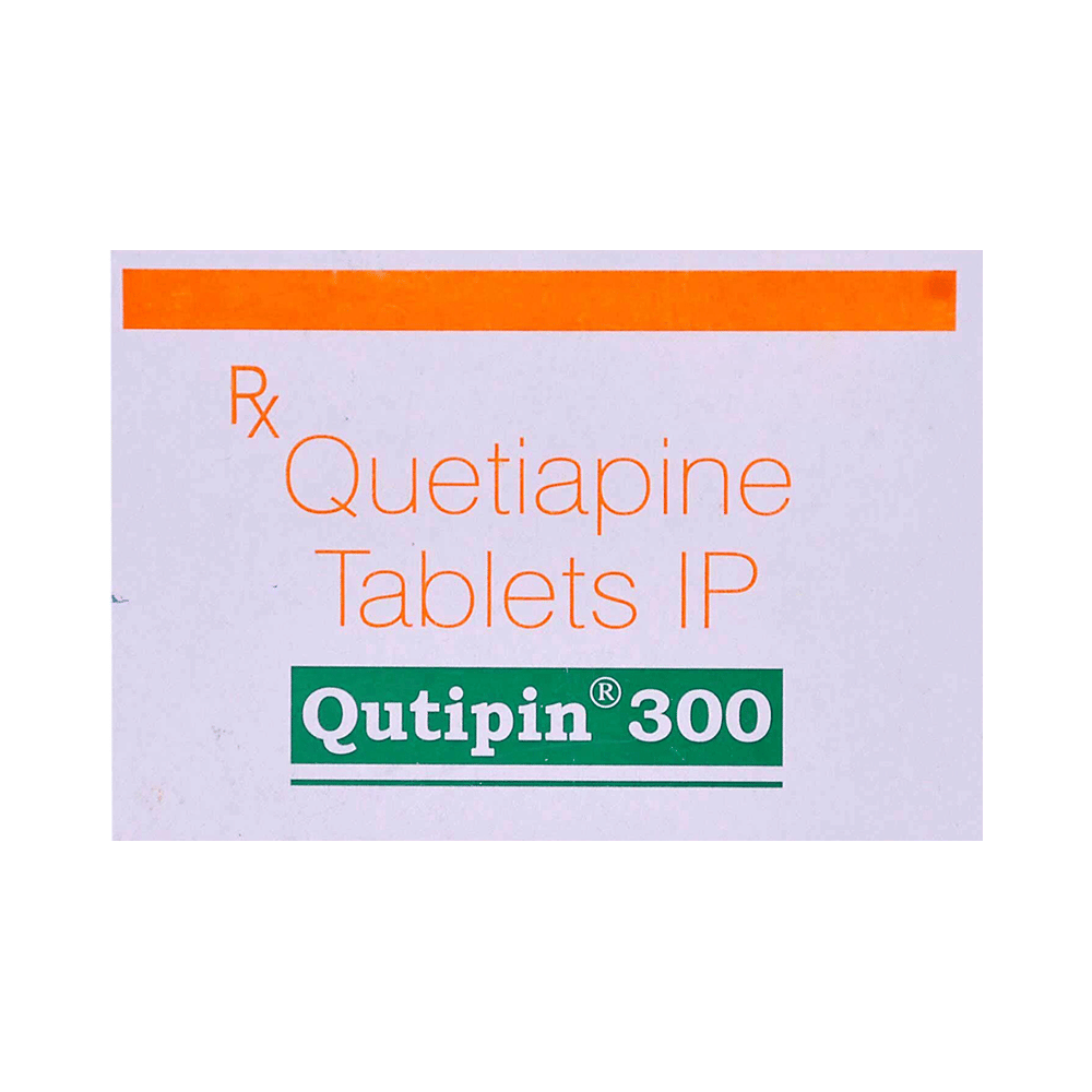 Qutipin 300 Tablet is used in the treatment of schizophrenia (a mental disorder that can result in hallucinations or delusions and also adversely affects a person’s ability to think and behave) and mania. It is also used to treat bipolar disorders. Qutipin 300 Tablet may be taken with or without food. However, it is advised to take it at the same time each day as this helps to maintain a consistent level of medicine in the body. Take this in the dose and duration as advised by your doctor and if you have missed a dose, take it as soon as you remember. It is important that this medication is not stopped suddenly without talking to your doctor as it may worsen your symptoms. However, discontinue this medicine immediately if you experience Neuroleptic malignant syndrome (NMS), characterized by fever, muscle rigidity, and altered consciousness or seizures.Some common side effects of this medicine include decreased hemoglobin levels in the blood, increased triglycerides level in blood, decreased cholesterol level in blood, headache, extrapyramidal symptoms, dry mouth, and withdrawal symptoms. Initially, this medicine may cause a sudden drop in blood pressure when you change positions, so it is better to rise slowly if you have been sitting or lying down. It also causes dizziness and sleepiness, so do not drive or do anything that requires mental focus until you know how this medicine affects you. This medicine may increase your weight but, modifying your lifestyle by having a healthy diet and exercising regularly can reduce this side effect.You should be cautious while using this medicine as it may increase the risk of developing diabetes, so it is better to monitor glucose regularly. Inform your doctor if you develop any unusual changes in mood or behavior, new or worsening depression, or suicidal thoughts while taking this medicine.