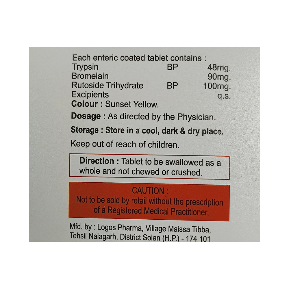 Salt Composition: Bromelain (90mg) + Trypsin (48mg) + Rutoside (100mg)