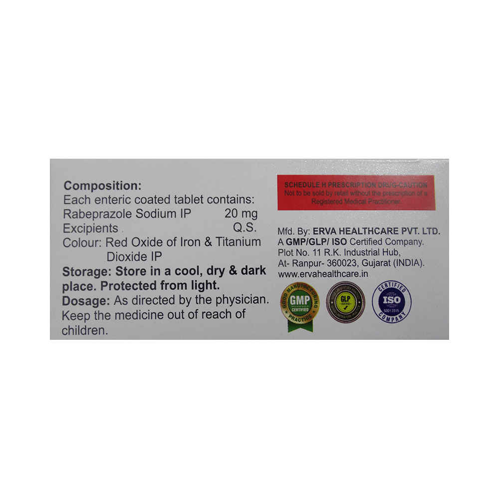 R-Lay 20 Tablet is a medicine that reduces the amount of acid produced in your stomach. It is used in the treatment of acid-related diseases of the stomach and intestine such as acid reflux, peptic ulcer disease, and Zollinger-Ellison syndrome. It provides relief from symptoms and promotes healing. R-Lay 20 Tablet medicine should be taken one hour before a meal, preferably in the morning. The dose will depend on your underlying condition and how you respond to the medicine. Try to take it regularly at the same time each day as advised by your doctor. You should keep on taking it as prescribed even if your symptoms disappear quickly. You may be able to help improve your symptoms by eating smaller meals more often and avoiding caffeinated drinks like tea and coffee, and spicy or fatty foods.This medicine's most common side effects include nausea, vomiting, headache, dizziness, flatulence, diarrhea, and stomach pain. These tend to be mild but talk to your doctor if they bother you or do not go away. The risk of side effects may increase the longer you take this medicine. Long-term use (more than 1 year) may increase your risk for bone fractures, especially with higher doses. Talk to your doctor about ways to prevent bone loss (osteoporosis), like taking calcium and vitamin D supplements.Low blood magnesium levels (hypomagnesemia) have been seen in some people taking this medicine for 3 months or more. This may lead to tiredness, confusion, dizziness, muscle twitches, and an irregular heartbeat. Your doctor may monitor your magnesium levels to prevent this.R-Lay 20 Tablet is not suitable for some people. Before taking this medicine, you need to tell your doctor if you have severe liver problems, are taking medicines for HIV, have ever had an allergic reaction to similar medicines in the past, or suffer from bone loss (osteoporosis). Pregnant or breastfeeding women should also consult their doctor before taking it. Avoid drinking alcohol as it makes your stomach produce excessive acid and can worsen your symptoms. Do not drive or use machinery or tools, if this medicine makes you feel dizzy or sleepy.