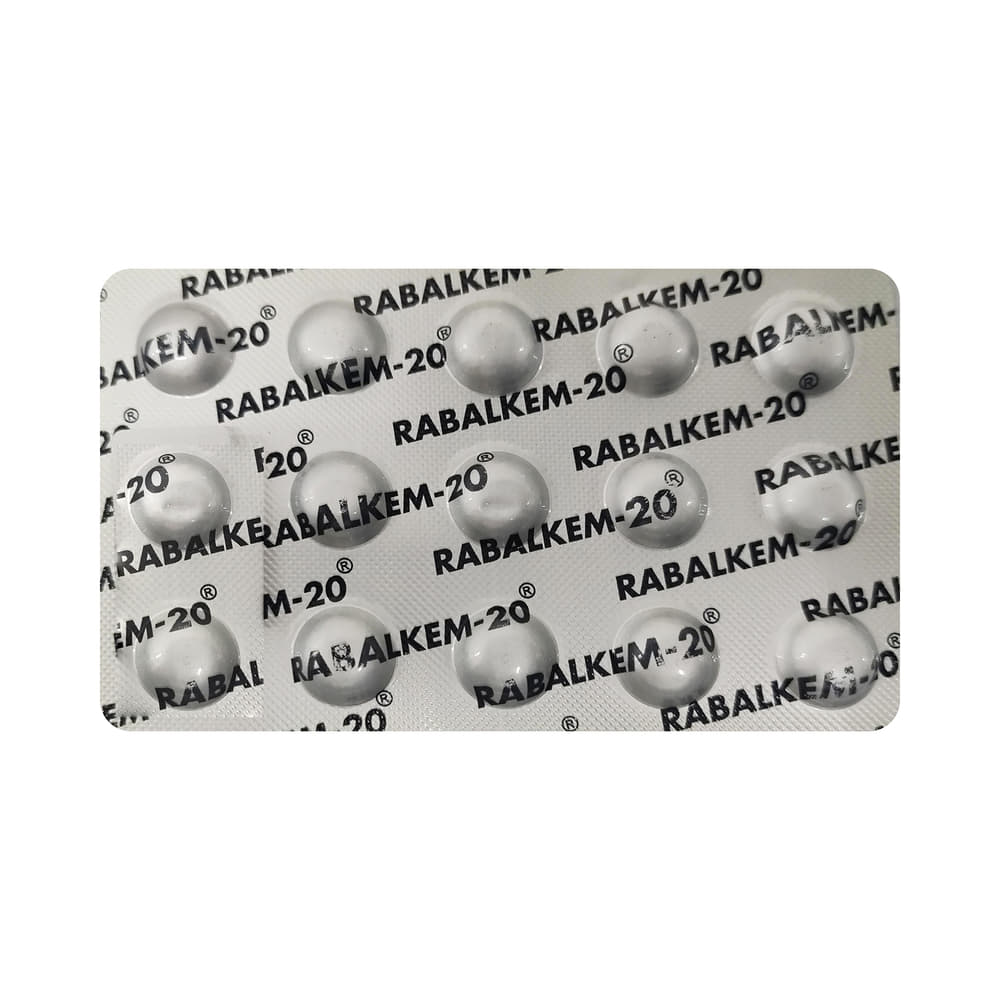 Rabalkem 20 Tablet is a medicine that reduces the amount of acid produced in your stomach. It is used in the treatment of acid-related diseases of the stomach and intestine such as acid reflux, peptic ulcer disease, and Zollinger-Ellison syndrome. It provides relief from symptoms and promotes healing. Rabalkem 20 Tablet medicine should be taken one hour before a meal, preferably in the morning. The dose will depend on your underlying condition and how you respond to the medicine. Try to take it regularly at the same time each day as advised by your doctor. You should keep on taking it as prescribed even if your symptoms disappear quickly. You may be able to help improve your symptoms by eating smaller meals more often and avoiding caffeinated drinks like tea and coffee, and spicy or fatty foods.This medicine's most common side effects include nausea, vomiting, headache, dizziness, flatulence, diarrhea, and stomach pain. These tend to be mild but talk to your doctor if they bother you or do not go away. The risk of side effects may increase the longer you take this medicine. Long-term use (more than 1 year) may increase your risk for bone fractures, especially with higher doses. Talk to your doctor about ways to prevent bone loss (osteoporosis), like taking calcium and vitamin D supplements.Low blood magnesium levels (hypomagnesemia) have been seen in some people taking this medicine for 3 months or more. This may lead to tiredness, confusion, dizziness, muscle twitches, and an irregular heartbeat. Your doctor may monitor your magnesium levels to prevent this.Rabalkem 20 Tablet is not suitable for some people. Before taking this medicine, you need to tell your doctor if you have severe liver problems, are taking medicines for HIV, have ever had an allergic reaction to similar medicines in the past, or suffer from bone loss (osteoporosis). Pregnant or breastfeeding women should also consult their doctor before taking it. Avoid drinking alcohol as it makes your stomach produce excessive acid and can worsen your symptoms. Do not drive or use machinery or tools, if this medicine makes you feel dizzy or sleepy.