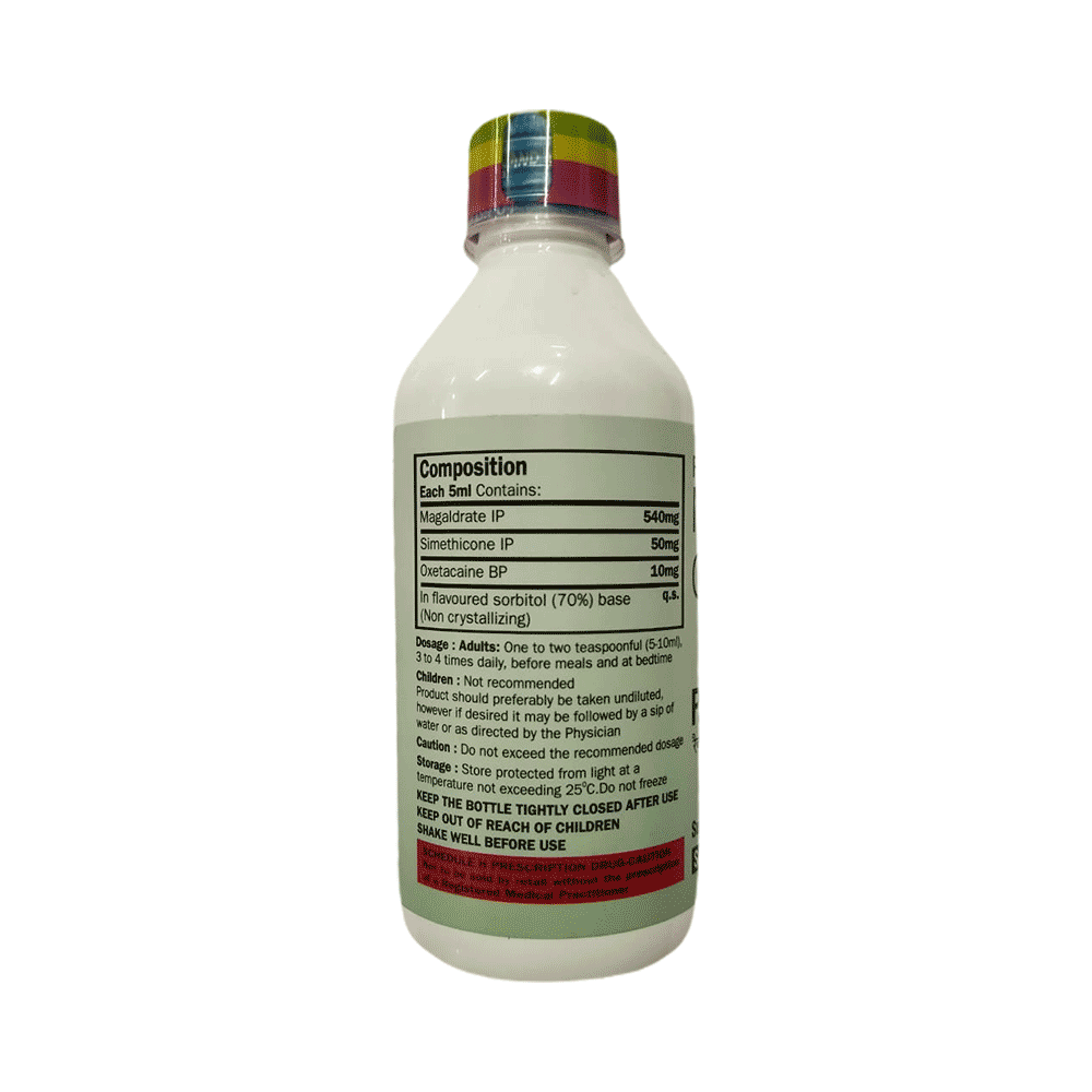 Salt Composition: Magaldrate (540mg) + Simethicone (50mg) + Oxetacaine (10mg)