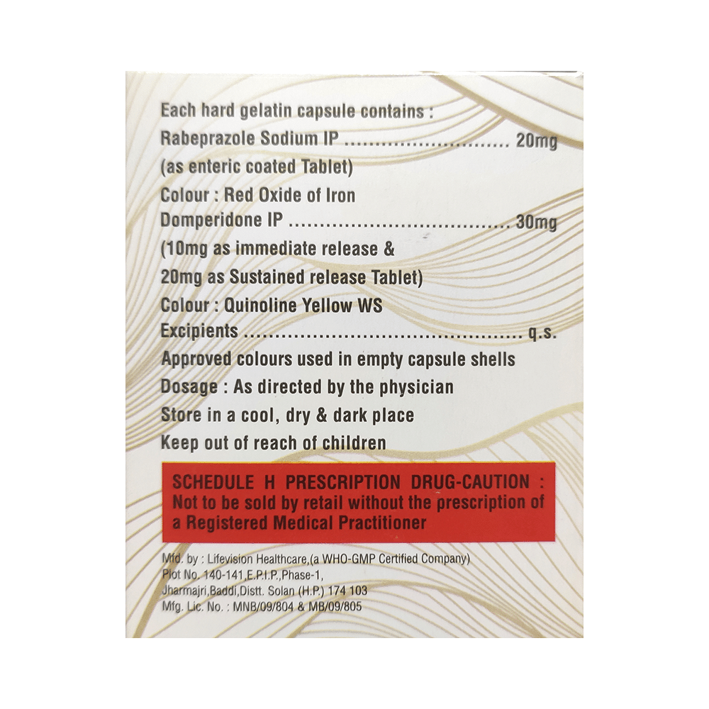 Salt Composition: Domperidone (30mg) + Rabeprazole (20mg)