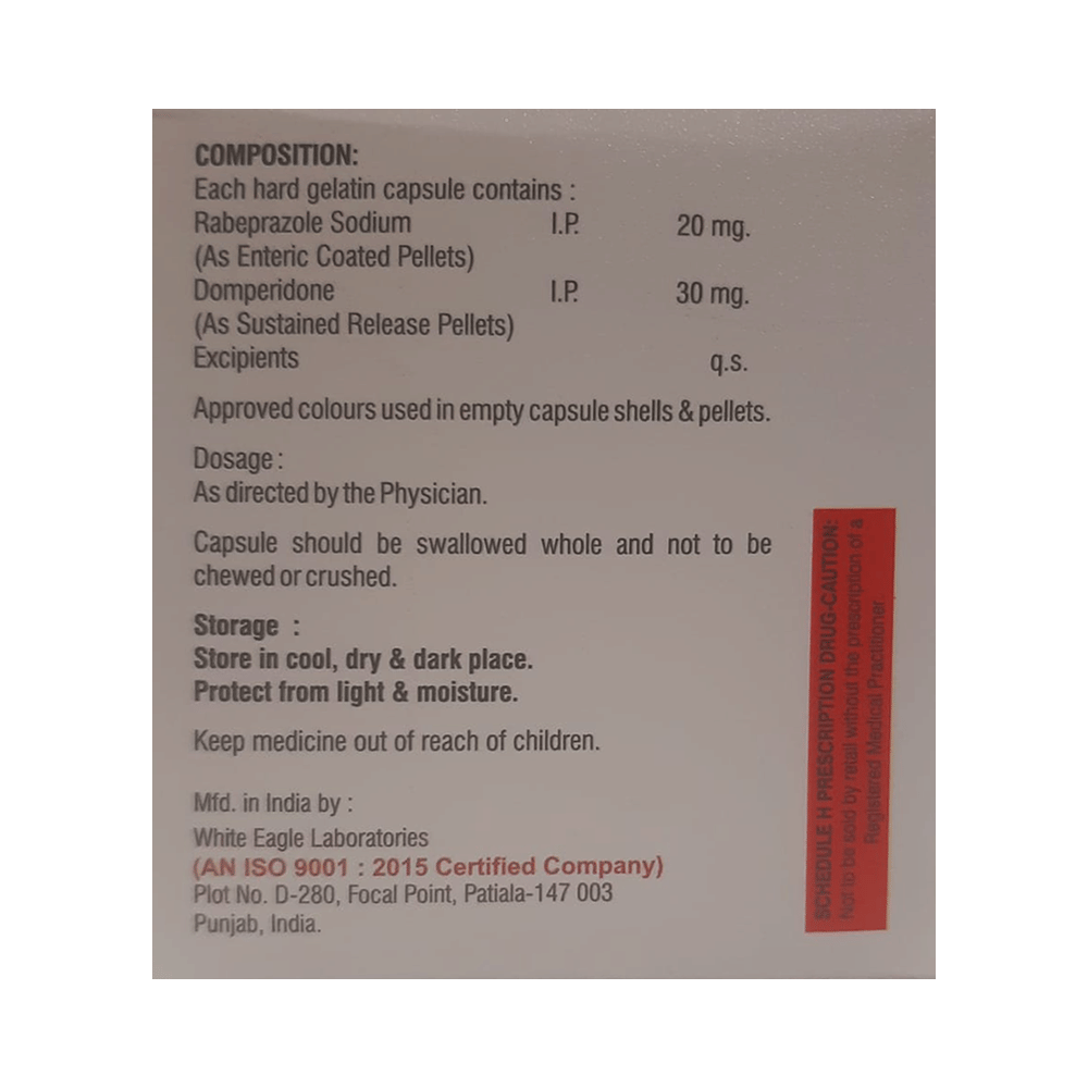 Salt Composition: Domperidone (30mg) + Rabeprazole (20mg)