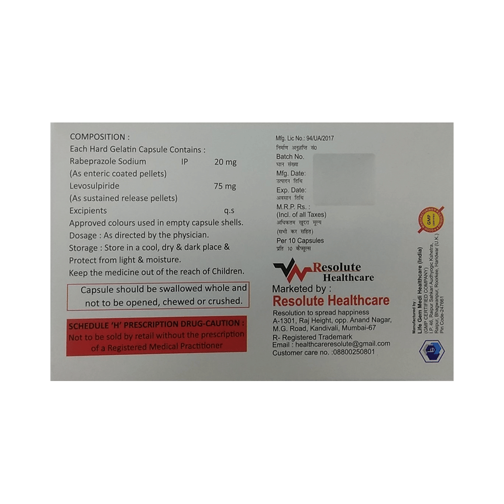Salt Composition: Levosulpiride (75mg) + Rabeprazole (20mg)