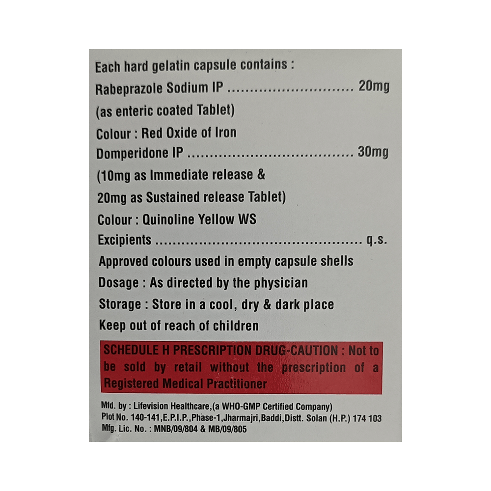 Salt Composition: Domperidone (30mg) + Rabeprazole (20mg)