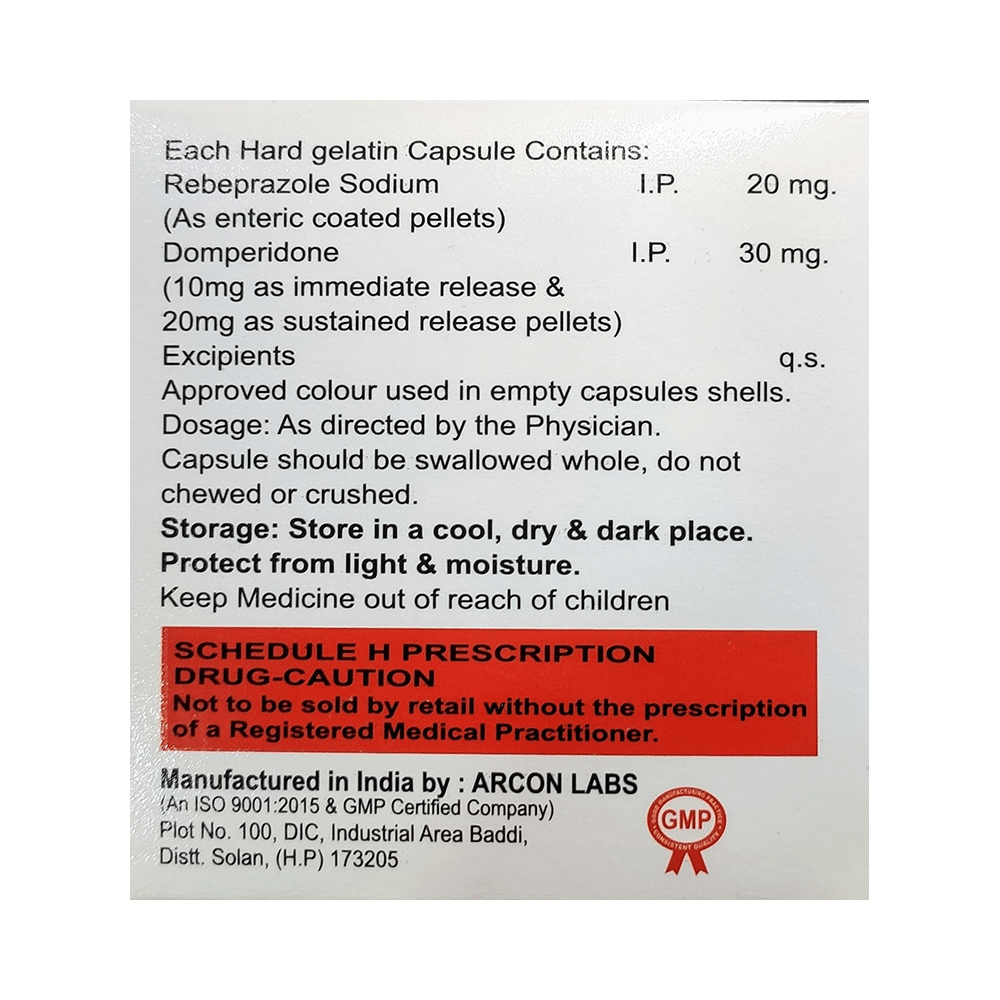 Salt Composition: Domperidone (30mg) + Rabeprazole (20mg)