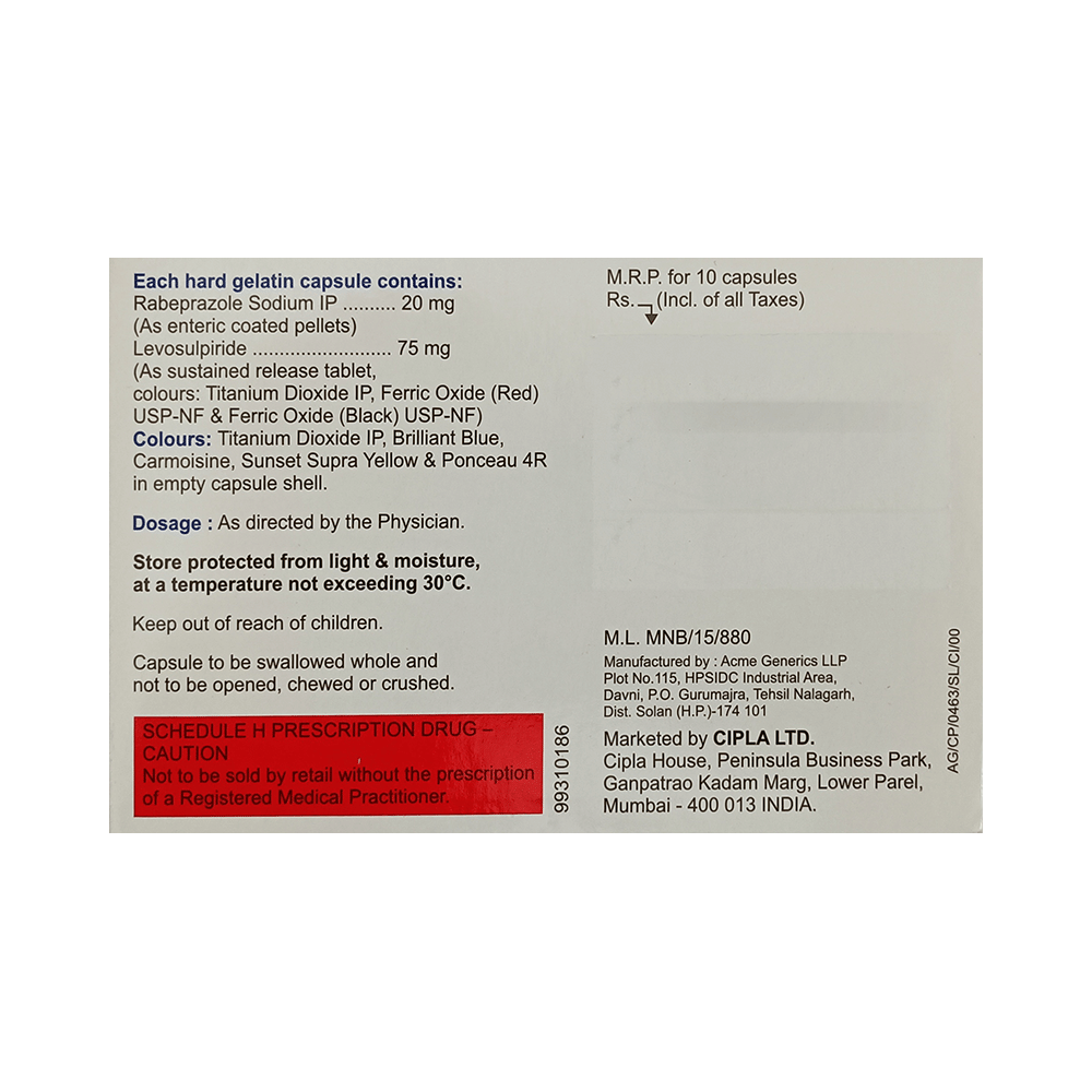 Salt Composition: Levosulpiride (75mg) + Rabeprazole (20mg)