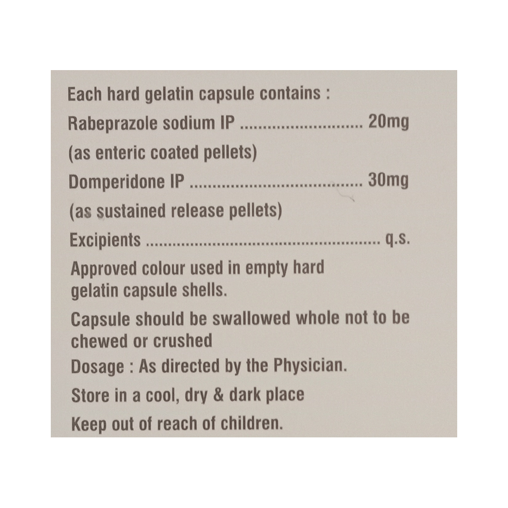 Salt Composition: Domperidone (30mg) + Rabeprazole (20mg)