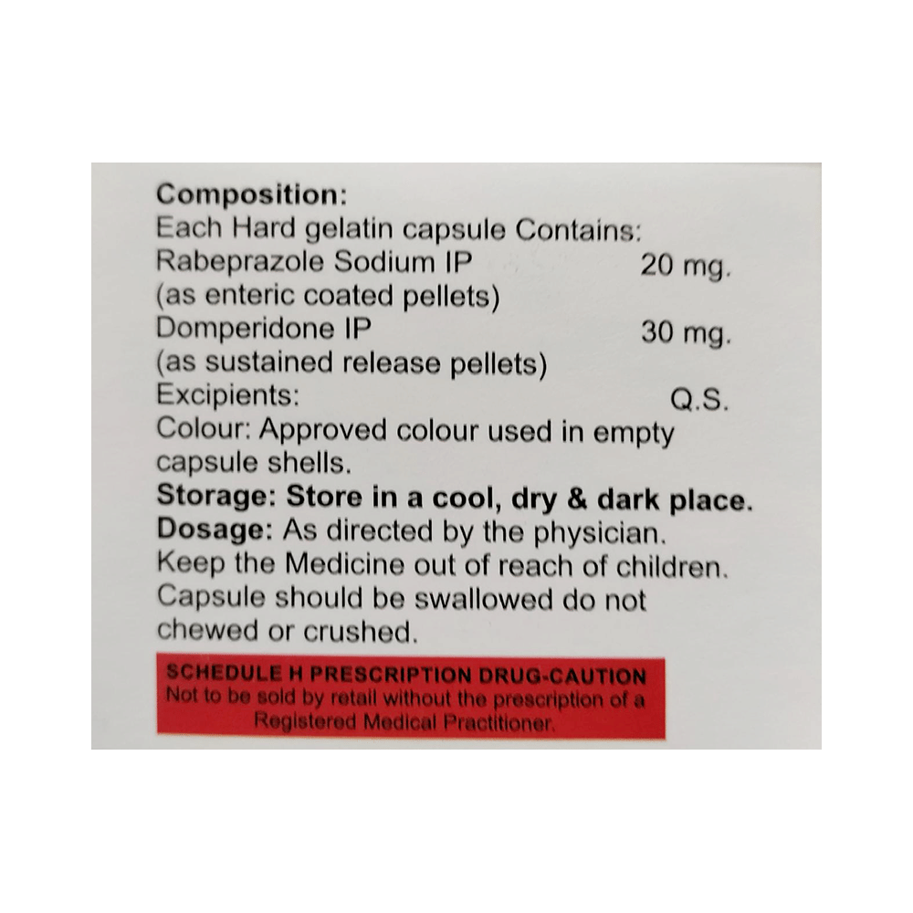 Salt Composition: Domperidone (30mg) + Rabeprazole (20mg)