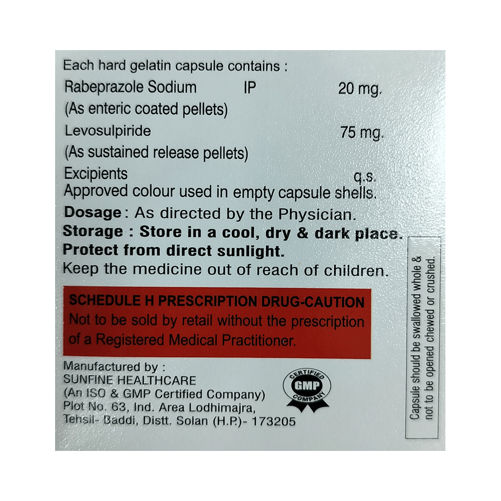 Salt Composition: Levosulpiride (75mg) + Rabeprazole (20mg)