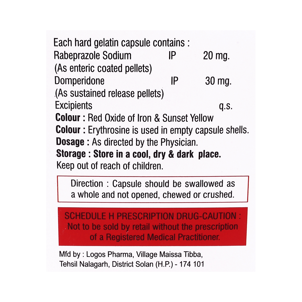 Salt Composition: Domperidone (30mg) + Rabeprazole (20mg)