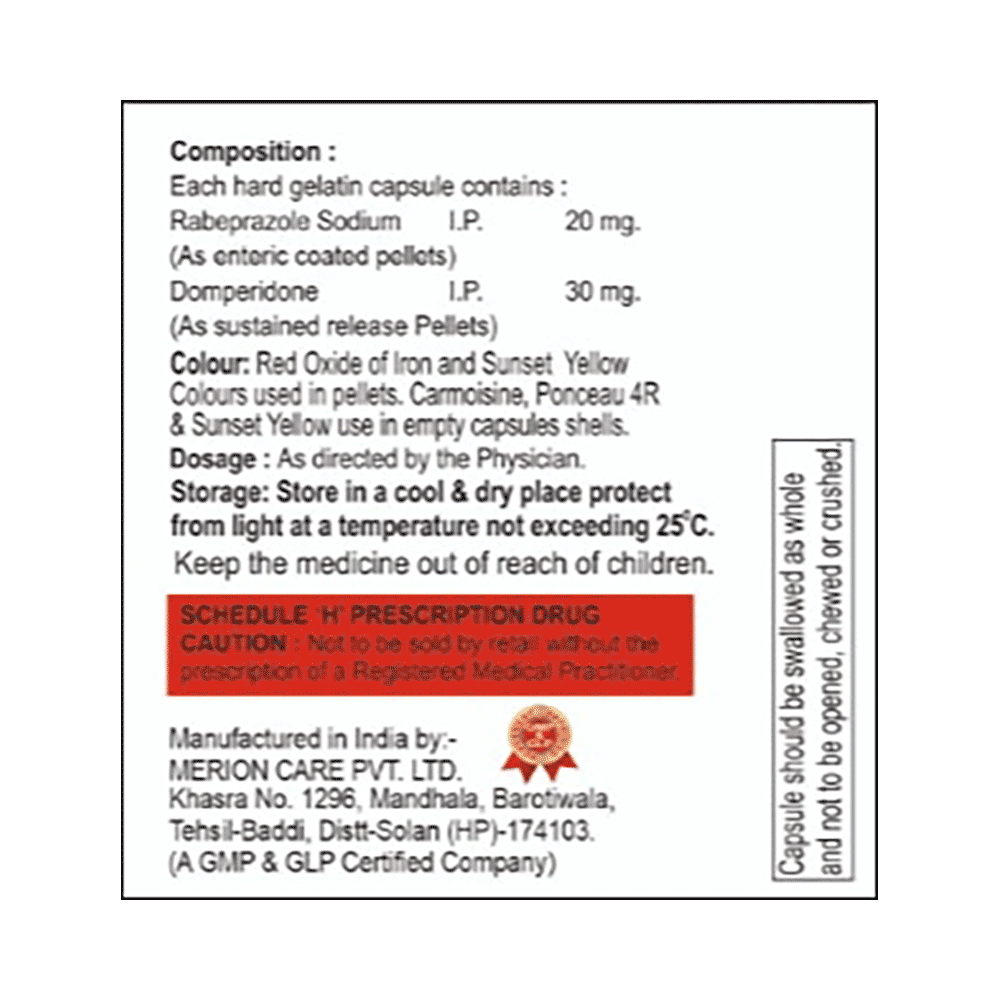 Salt Composition: Domperidone (30mg) + Rabeprazole (20mg)