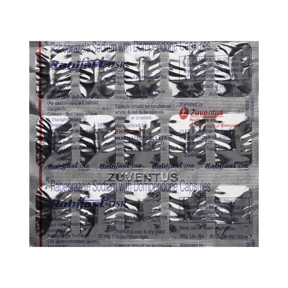 In Treatment of Gastroesophageal reflux disease (Acid reflux)Gastroesophageal reflux disease (GERD) is a chronic (long-term) condition in which there is an excess production of acid in the stomach. Rabifast-DSR Capsule reduces the amount of acid your stomach makes and relieves the pain associated with heartburn and acid reflux. You should take it exactly as it is prescribed for it to be effective. Some simple lifestyle changes can help reduce the symptoms of GERD. Think about what foods trigger heartburn and try to avoid them; eat smaller, more frequent meals; try to lose weight if you are overweight, and try to find ways to relax. Do not eat within 3-4 hours of going to bed.In Treatment of Peptic ulcer diseasePeptic ulcer disease is a condition in which painful sores or ulcers develop in the inner lining of the stomach or gut (intestine). Rabifast-DSR Capsule reduces the amount of acid your stomach makes which prevents further damage to the ulcer as it heals naturally. You may be given other medicines along with this medicine depending on what caused the ulcer. You need to keep taking the medicine as it is prescribed for it to be effective, even if the symptoms seem to disappear.show moreshow less
