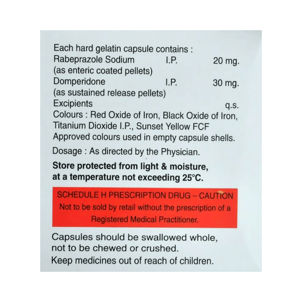Salt Composition: Domperidone (30mg) + Rabeprazole (20mg)