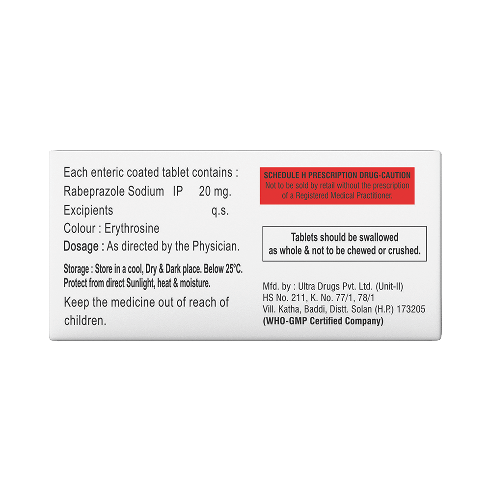 Rabimits 20 Tablet is a medicine that reduces the amount of acid produced in your stomach. It is used in the treatment of acid-related diseases of the stomach and intestine such as acid reflux, peptic ulcer disease, and Zollinger-Ellison syndrome. It provides relief from symptoms and promotes healing. Rabimits 20 Tablet medicine should be taken one hour before a meal, preferably in the morning. The dose will depend on your underlying condition and how you respond to the medicine. Try to take it regularly at the same time each day as advised by your doctor. You should keep on taking it as prescribed even if your symptoms disappear quickly. You may be able to help improve your symptoms by eating smaller meals more often and avoiding caffeinated drinks like tea and coffee, and spicy or fatty foods.This medicine's most common side effects include nausea, vomiting, headache, dizziness, flatulence, diarrhea, and stomach pain. These tend to be mild but talk to your doctor if they bother you or do not go away. The risk of side effects may increase the longer you take this medicine. Long-term use (more than 1 year) may increase your risk for bone fractures, especially with higher doses. Talk to your doctor about ways to prevent bone loss (osteoporosis), like taking calcium and vitamin D supplements.Low blood magnesium levels (hypomagnesemia) have been seen in some people taking this medicine for 3 months or more. This may lead to tiredness, confusion, dizziness, muscle twitches, and an irregular heartbeat. Your doctor may monitor your magnesium levels to prevent this.Rabimits 20 Tablet is not suitable for some people. Before taking this medicine, you need to tell your doctor if you have severe liver problems, are taking medicines for HIV, have ever had an allergic reaction to similar medicines in the past, or suffer from bone loss (osteoporosis). Pregnant or breastfeeding women should also consult their doctor before taking it. Avoid drinking alcohol as it makes your stomach produce excessive acid and can worsen your symptoms. Do not drive or use machinery or tools, if this medicine makes you feel dizzy or sleepy.