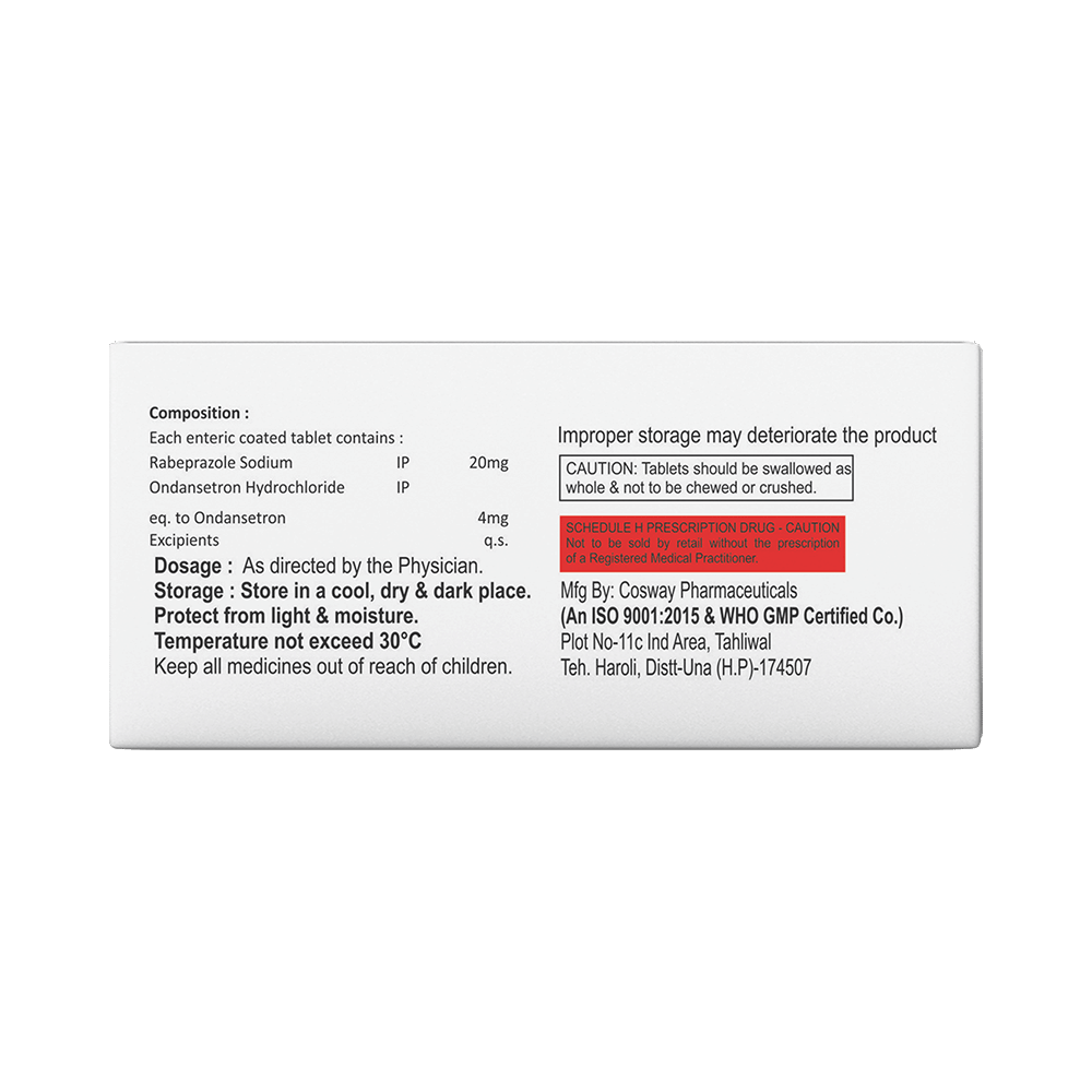 Salt Composition: Ondansetron (4mg) + Rabeprazole (20mg)