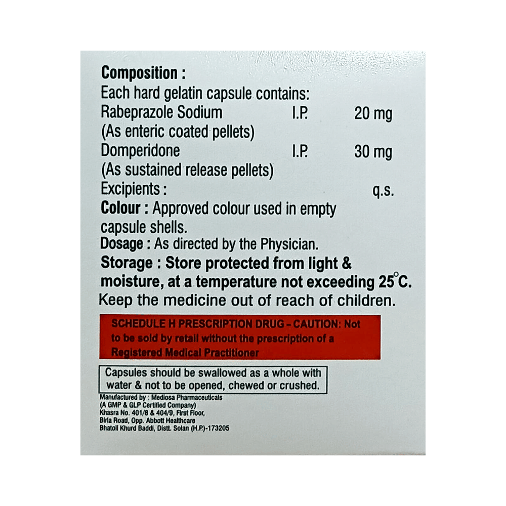 Salt Composition: Domperidone (30mg) + Rabeprazole (20mg)