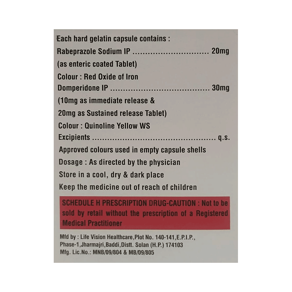 Salt Composition: Domperidone (30mg) + Rabeprazole (20mg)