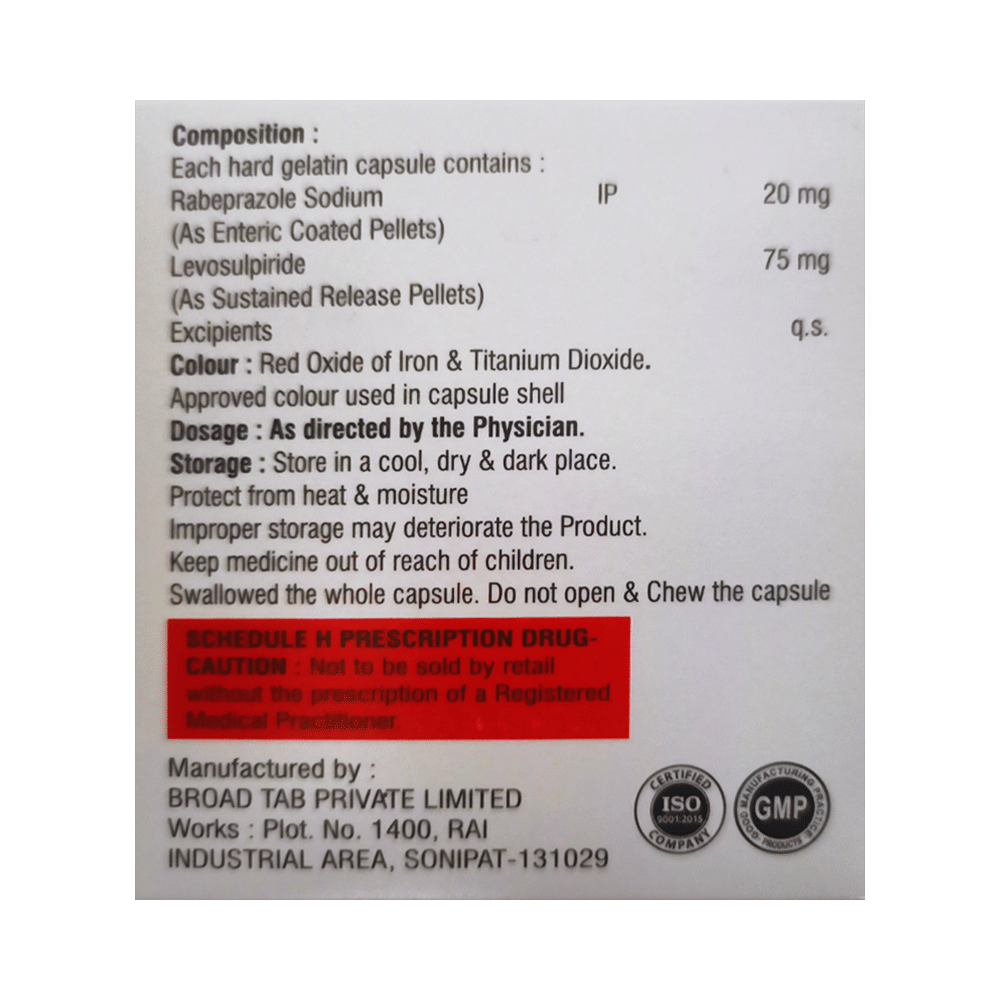 Salt Composition: Levosulpiride (75mg) + Rabeprazole (20mg)