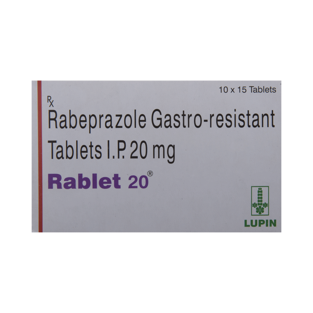 rABlet 20 Tablet is a medicine that reduces the amount of acid produced in your stomach. It is used in the treatment of acid-related diseases of the stomach and intestine such as acid reflux, peptic ulcer disease, and Zollinger-Ellison syndrome. It provides relief from symptoms and promotes healing. rABlet 20 Tablet medicine should be taken one hour before a meal, preferably in the morning. The dose will depend on your underlying condition and how you respond to the medicine. Try to take it regularly at the same time each day as advised by your doctor. You should keep on taking it as prescribed even if your symptoms disappear quickly. You may be able to help improve your symptoms by eating smaller meals more often and avoiding caffeinated drinks like tea and coffee, and spicy or fatty foods.This medicine's most common side effects include nausea, vomiting, headache, dizziness, flatulence, diarrhea, and stomach pain. These tend to be mild but talk to your doctor if they bother you or do not go away. The risk of side effects may increase the longer you take this medicine. Long-term use (more than 1 year) may increase your risk for bone fractures, especially with higher doses. Talk to your doctor about ways to prevent bone loss (osteoporosis), like taking calcium and vitamin D supplements.Low blood magnesium levels (hypomagnesemia) have been seen in some people taking this medicine for 3 months or more. This may lead to tiredness, confusion, dizziness, muscle twitches, and an irregular heartbeat. Your doctor may monitor your magnesium levels to prevent this.rABlet 20 Tablet is not suitable for some people. Before taking this medicine, you need to tell your doctor if you have severe liver problems, are taking medicines for HIV, have ever had an allergic reaction to similar medicines in the past, or suffer from bone loss (osteoporosis). Pregnant or breastfeeding women should also consult their doctor before taking it. Avoid drinking alcohol as it makes your stomach produce excessive acid and can worsen your symptoms. Do not drive or use machinery or tools, if this medicine makes you feel dizzy or sleepy.