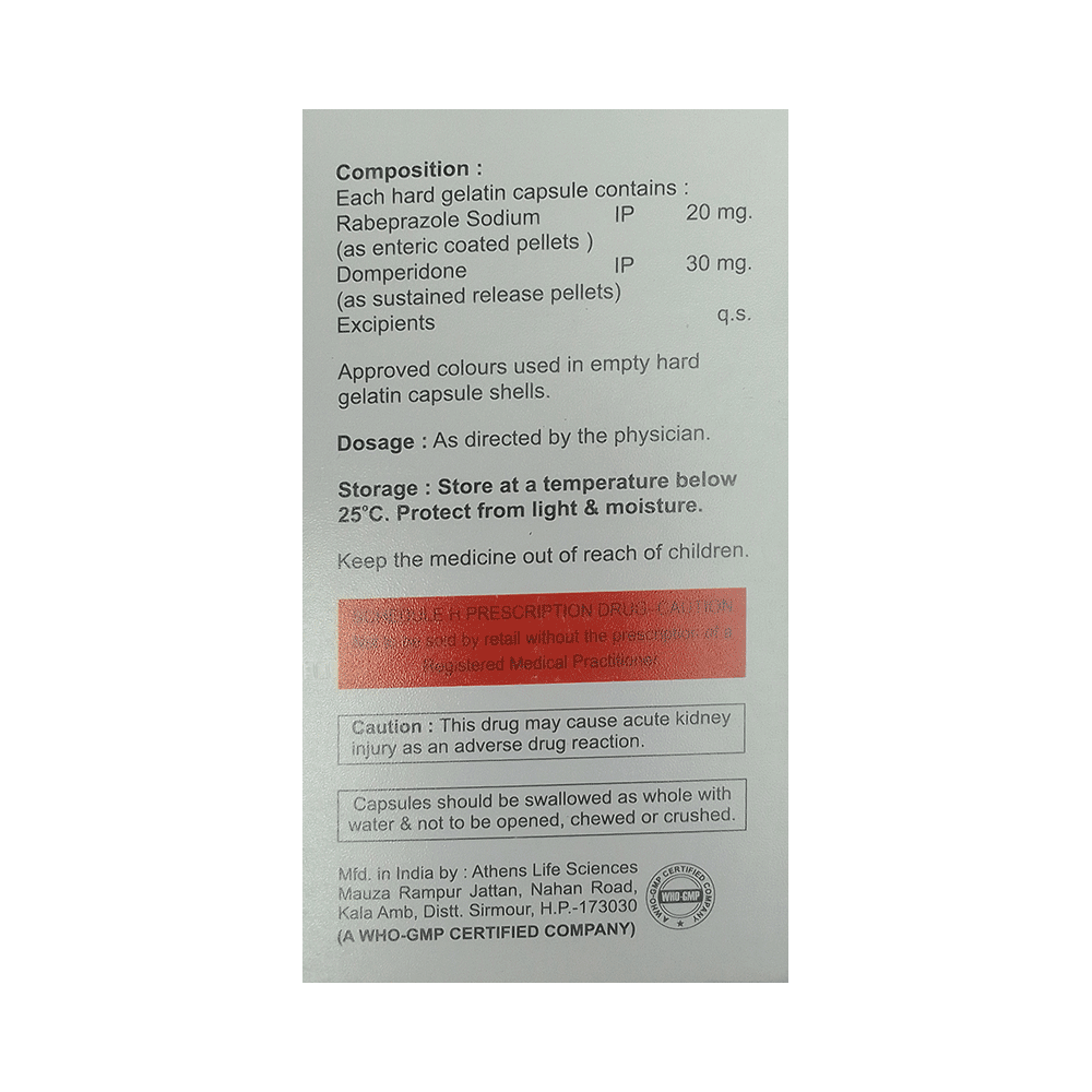 Salt Composition: Domperidone (30mg) + Rabeprazole (20mg)